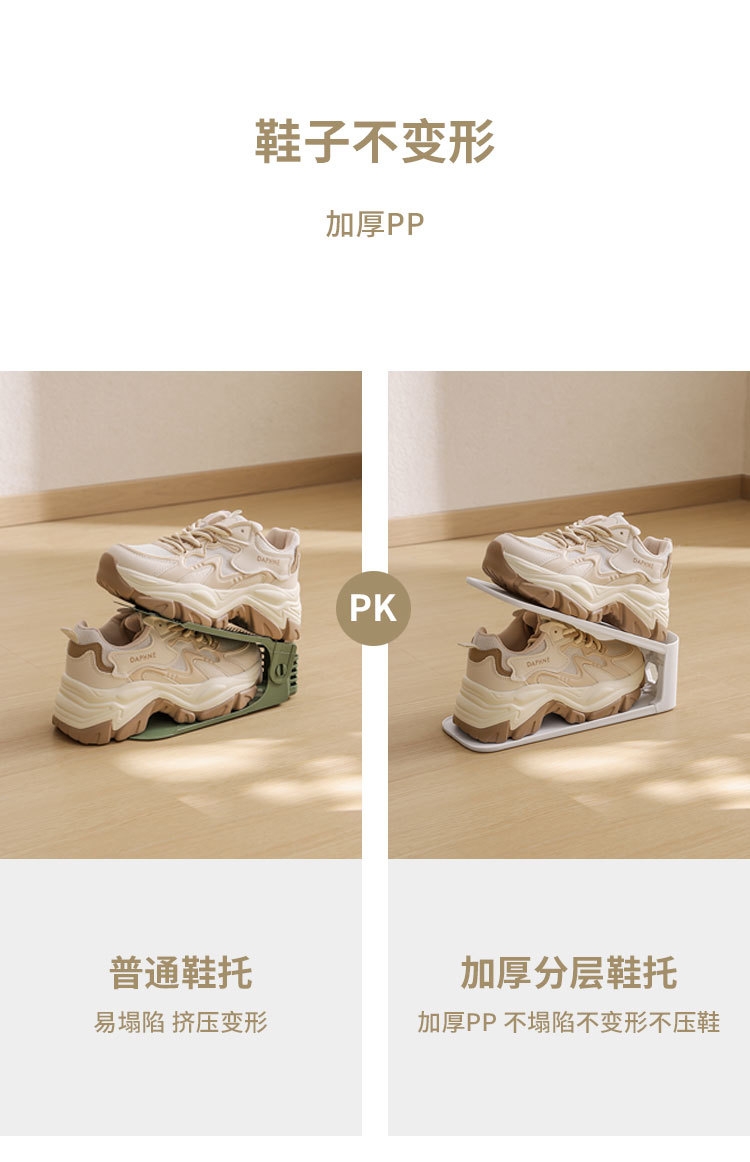 새로운 두꺼운 레이어드 신발 홀더, 2단계 조절 가능 가정용 신발 홀더, 기숙사 신발장, 신발 보관함스토어 가기