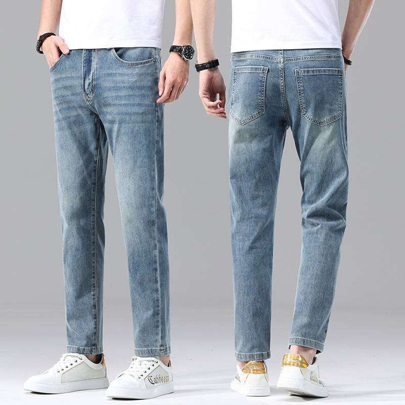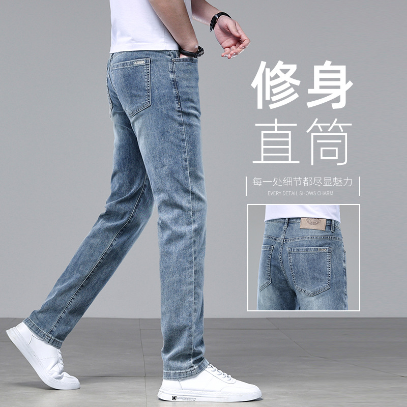 2025년 가을 신상 고급 슬림핏 스트레이트 데님 팬츠 남성 레트로 빈티지 블루 팬츠 남성 가을 신상 남성 바지스토어 가기