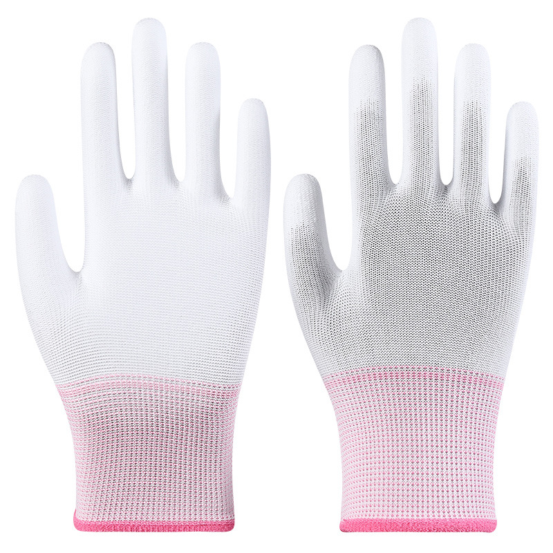 PU 손가락 코팅 손바닥 장갑 도매 얇은 통기성 흰색 나일론 장갑 먼지가없는 정전기 방지 특수 노동 장갑