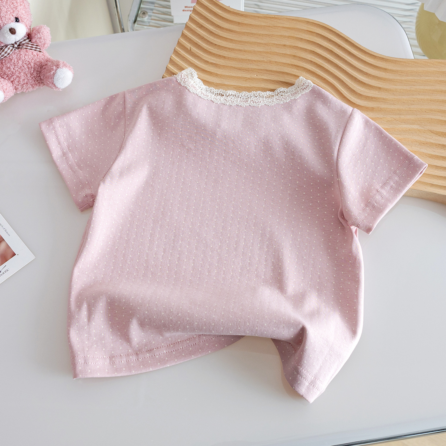 소녀 만화 반 소매 새로운 여름 어린이 짧은 소매 탑 아기 스타일 레이스 칼라 달콤한 어린이 패션스토어 가기