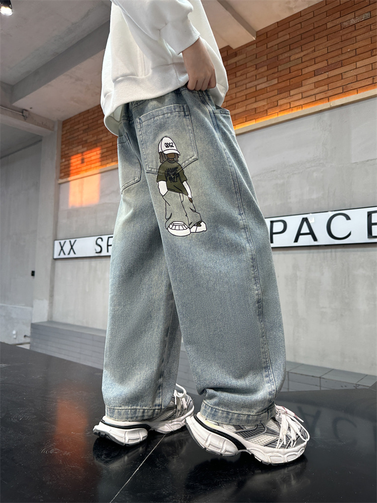 소년 데님 바지 봄과 가을 2025 새로운 봄 큰 어린이 봄 원피스 소년 캐주얼 프라이드 스트리트 더피언스 핸섬 패션스토어 가기