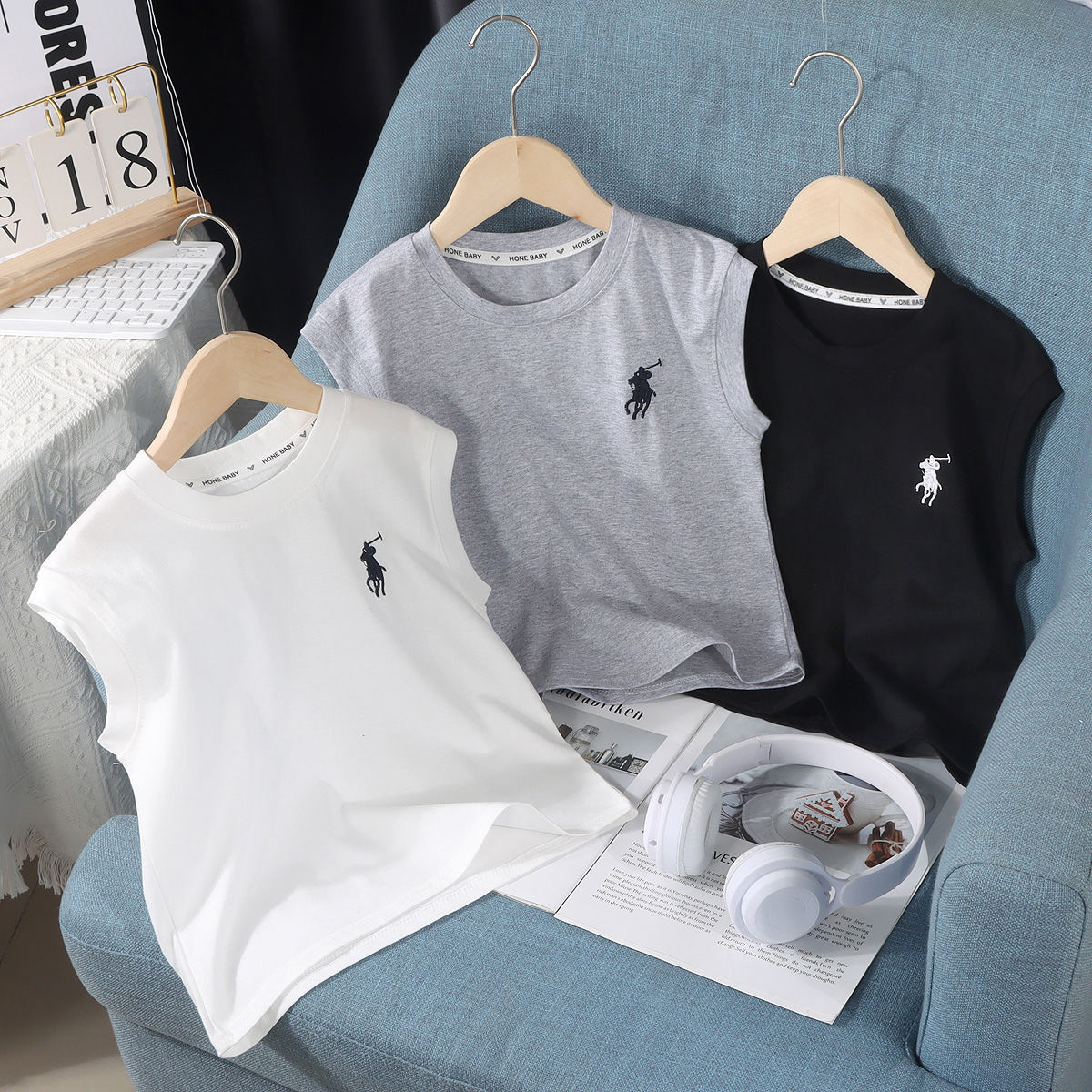 새로운 소년 조끼 솔리드 컬러 티셔츠 민소매 셔츠 여름 아기베이스 셔츠