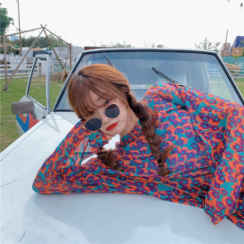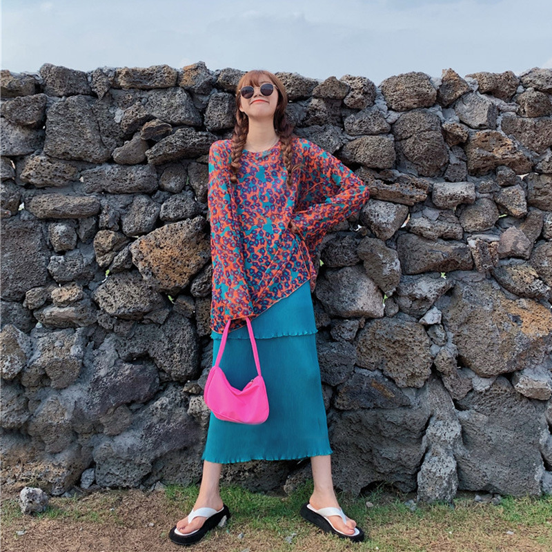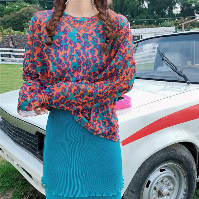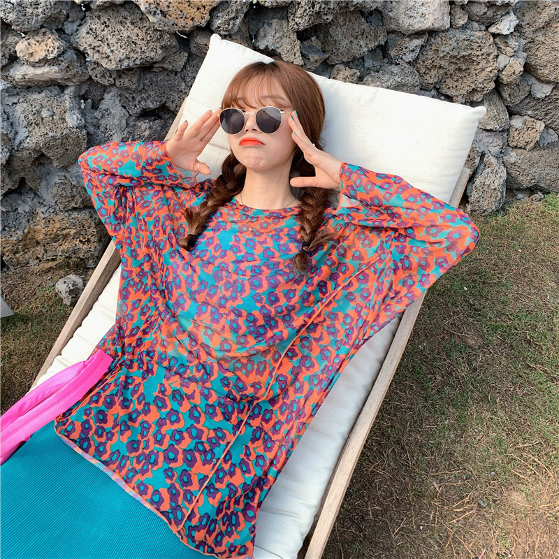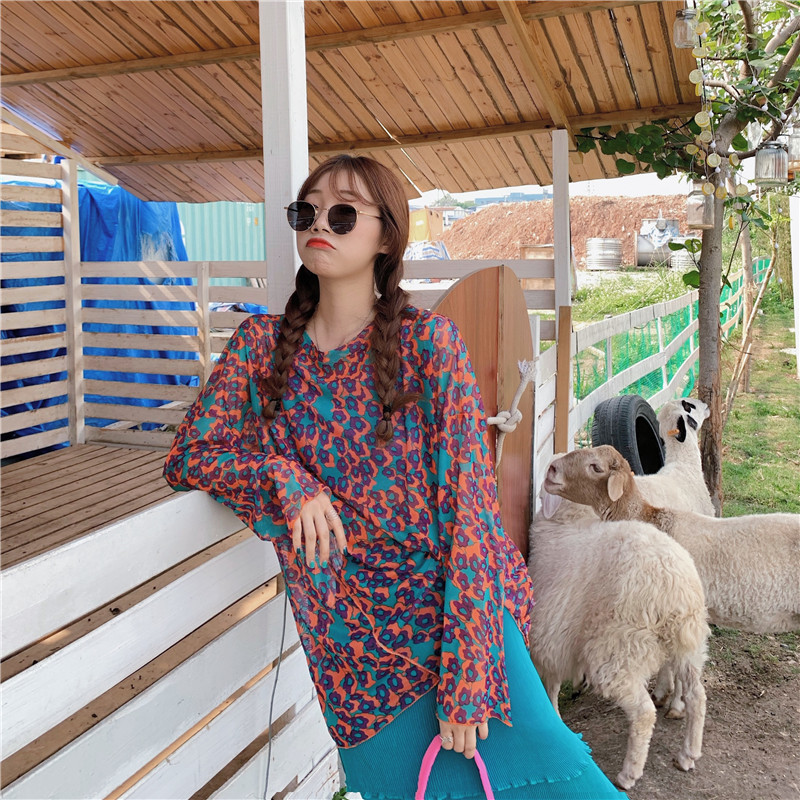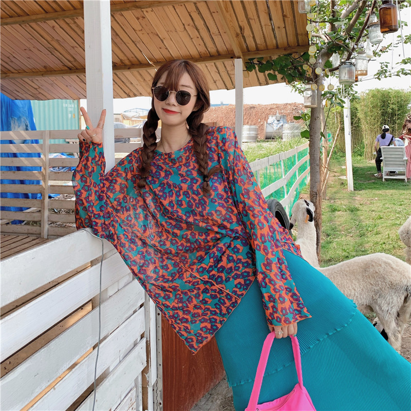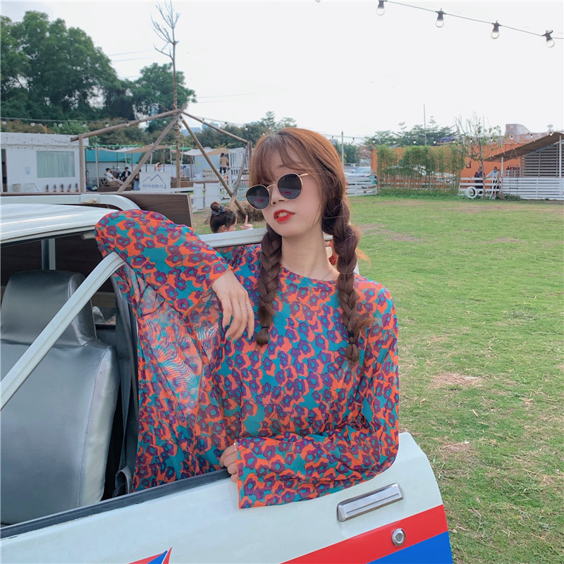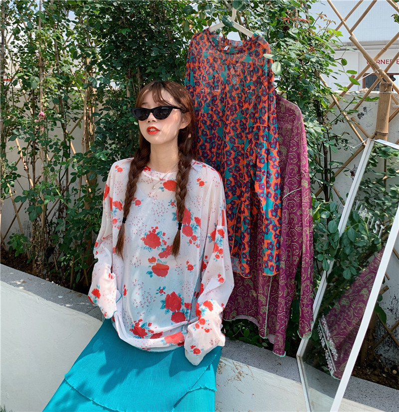 메쉬 티셔츠 여성용 긴팔 2025 여름 새 패턴 인쇄 선 스크린 느슨한 기본 셔츠 탑스토어 가기