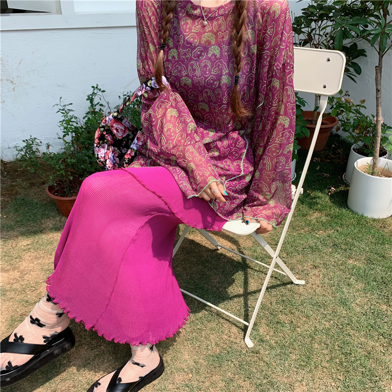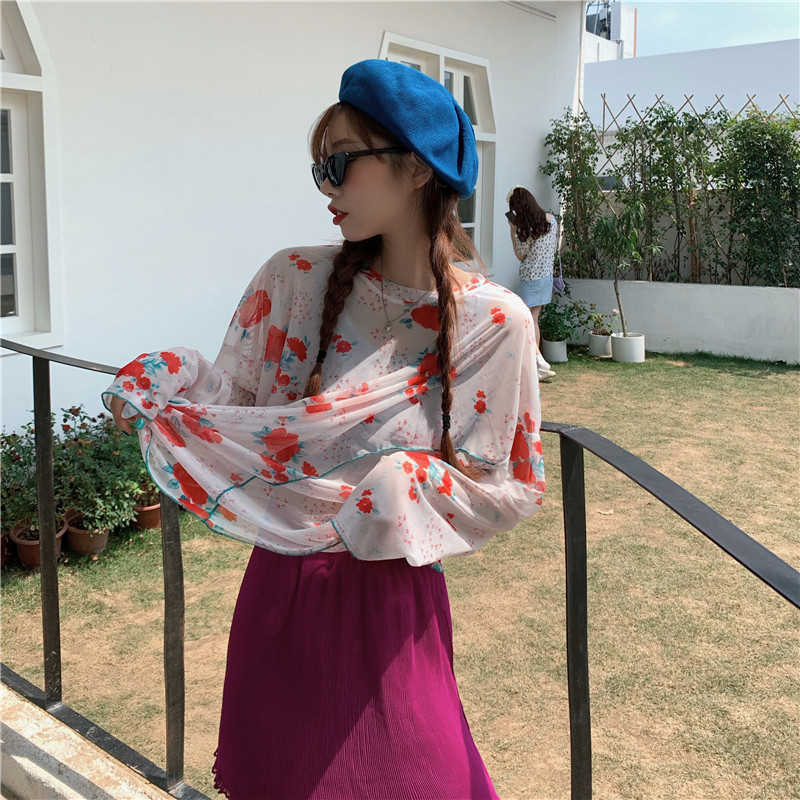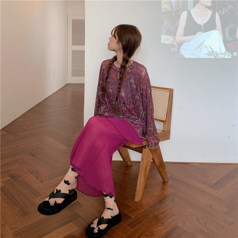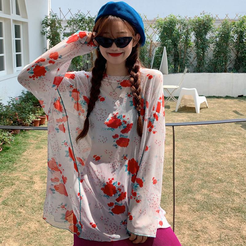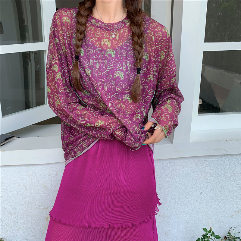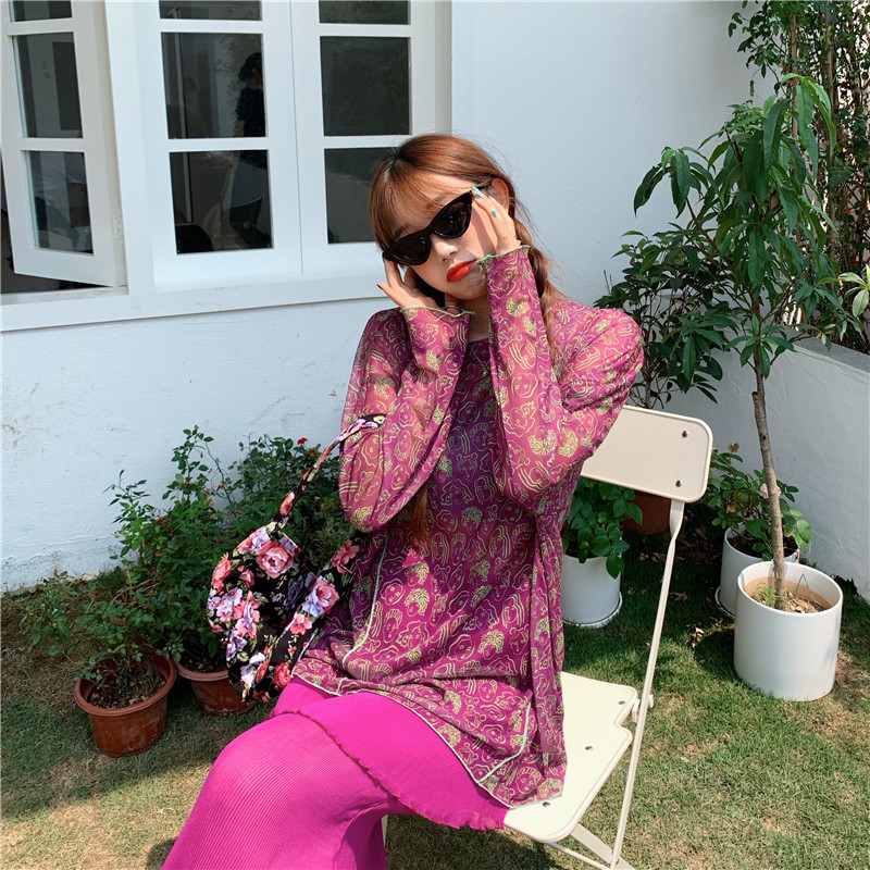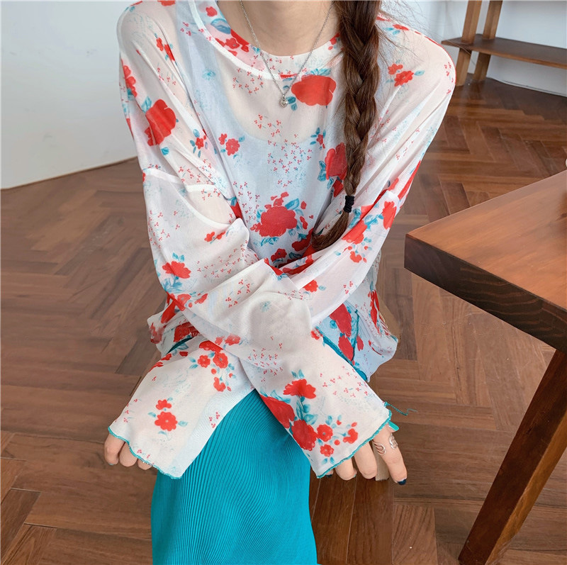 메쉬 티셔츠 여성용 긴팔 2025 여름 새 패턴 인쇄 선 스크린 느슨한 기본 셔츠 탑