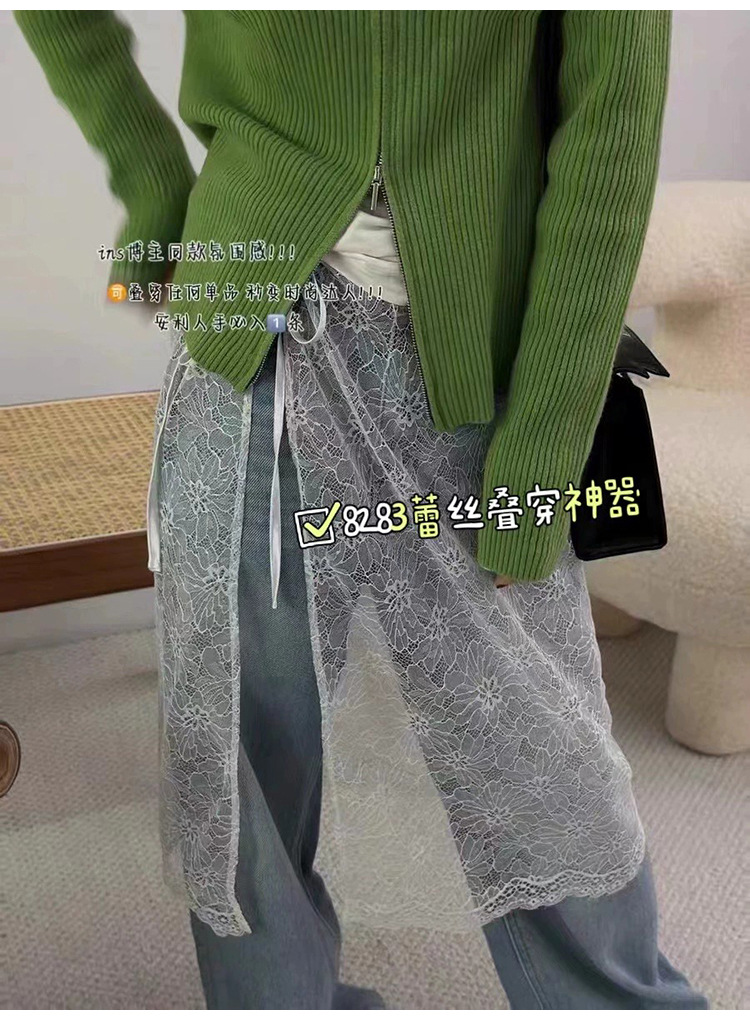 고급 새로운 중국 스타일 쌓인 메쉬 스커트 여성의 봄과 가을 2025 새로운 유행 우아한 간단한 내부 스커트스토어 가기