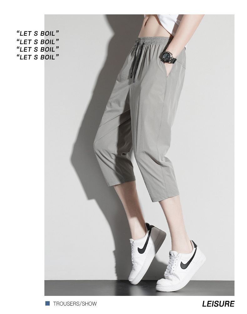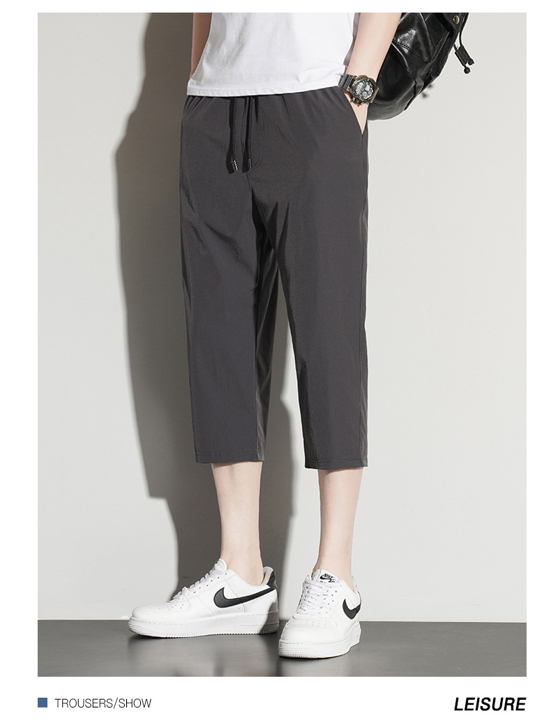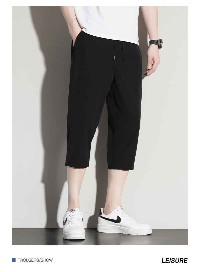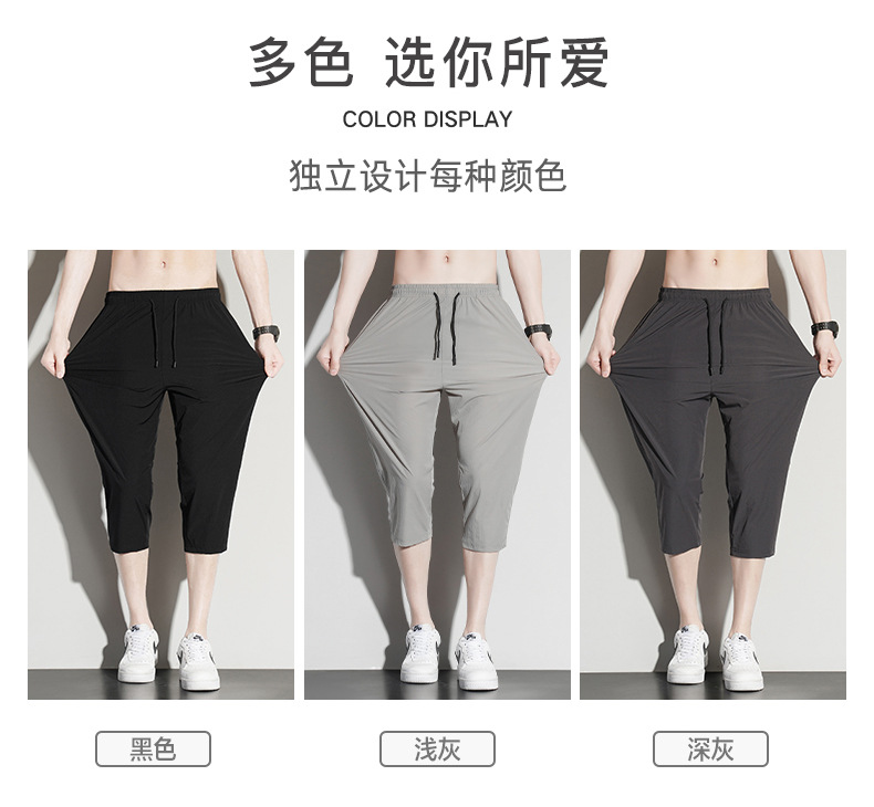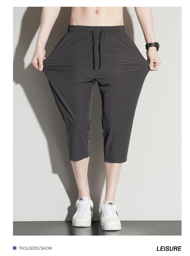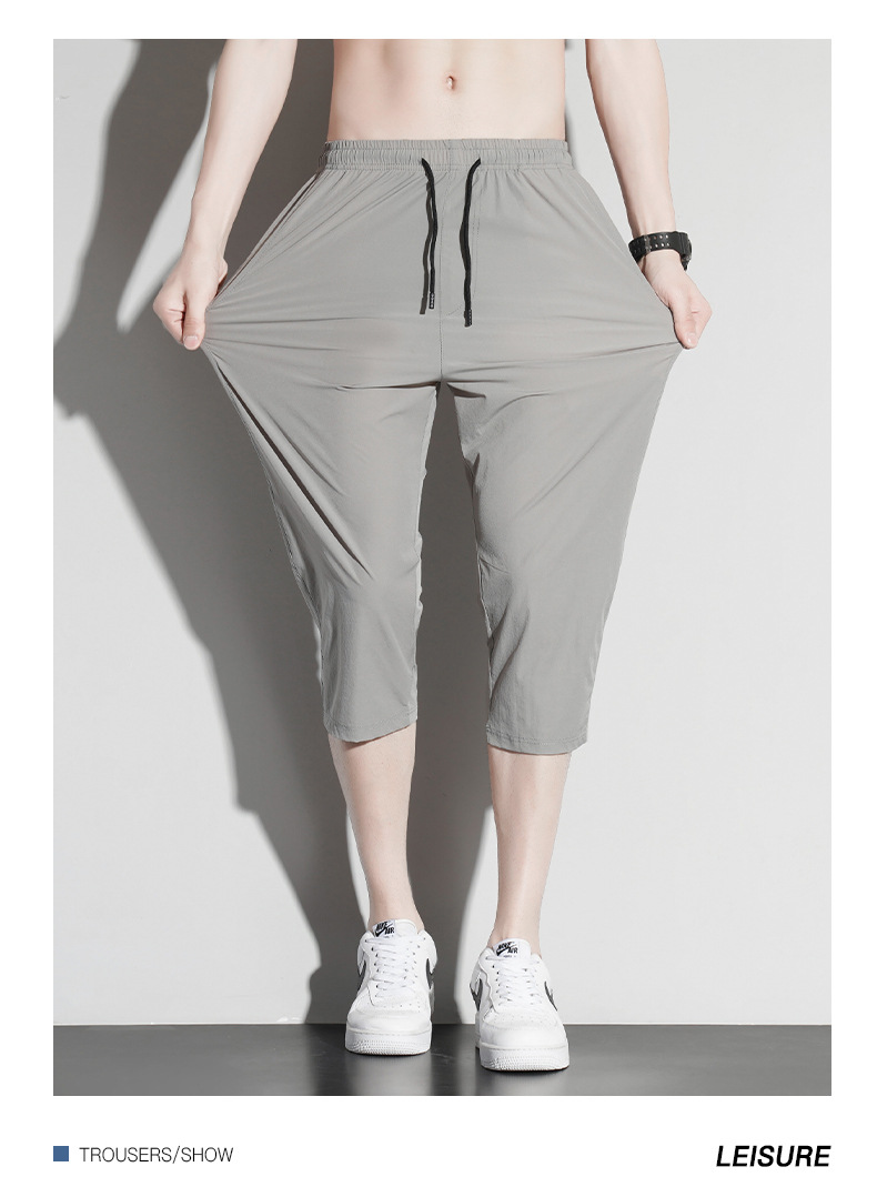 반바지 남자 여름 새로운 아이스 실크 플러스 사이즈 카프리 바지 남자 스트레이트 레그 캐주얼 스포츠 스트레치 빠른 건조 레깅스 바지