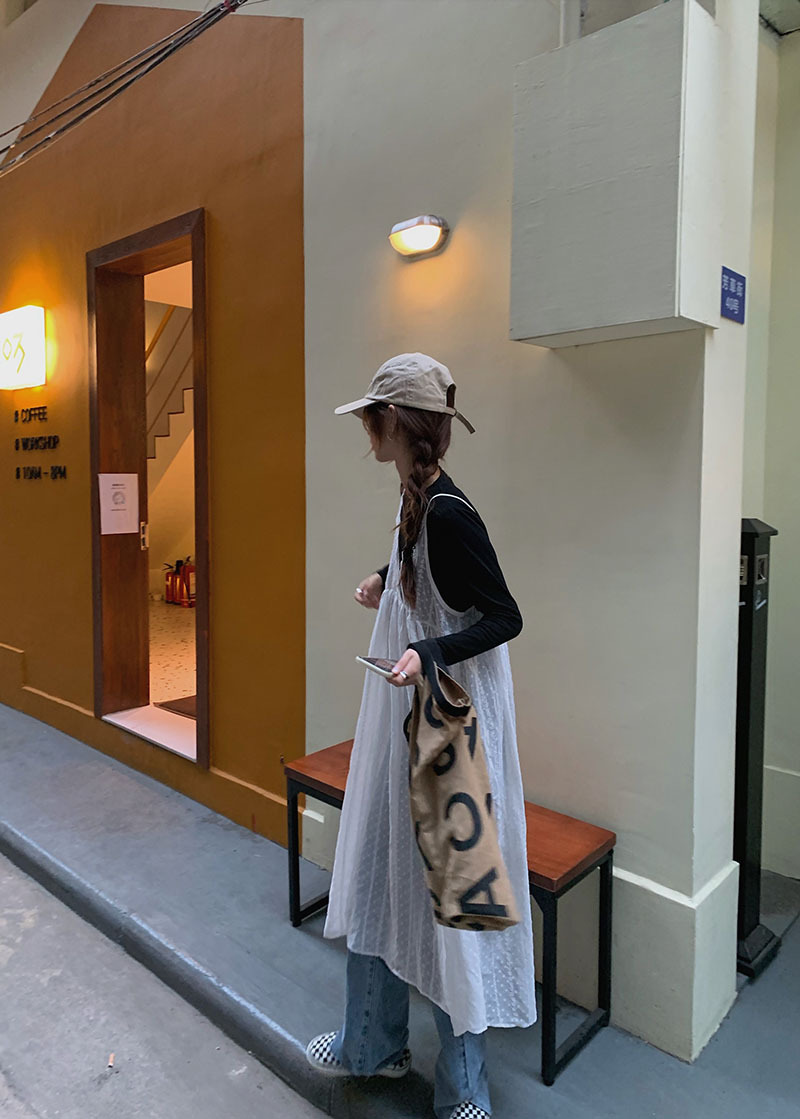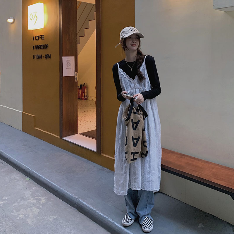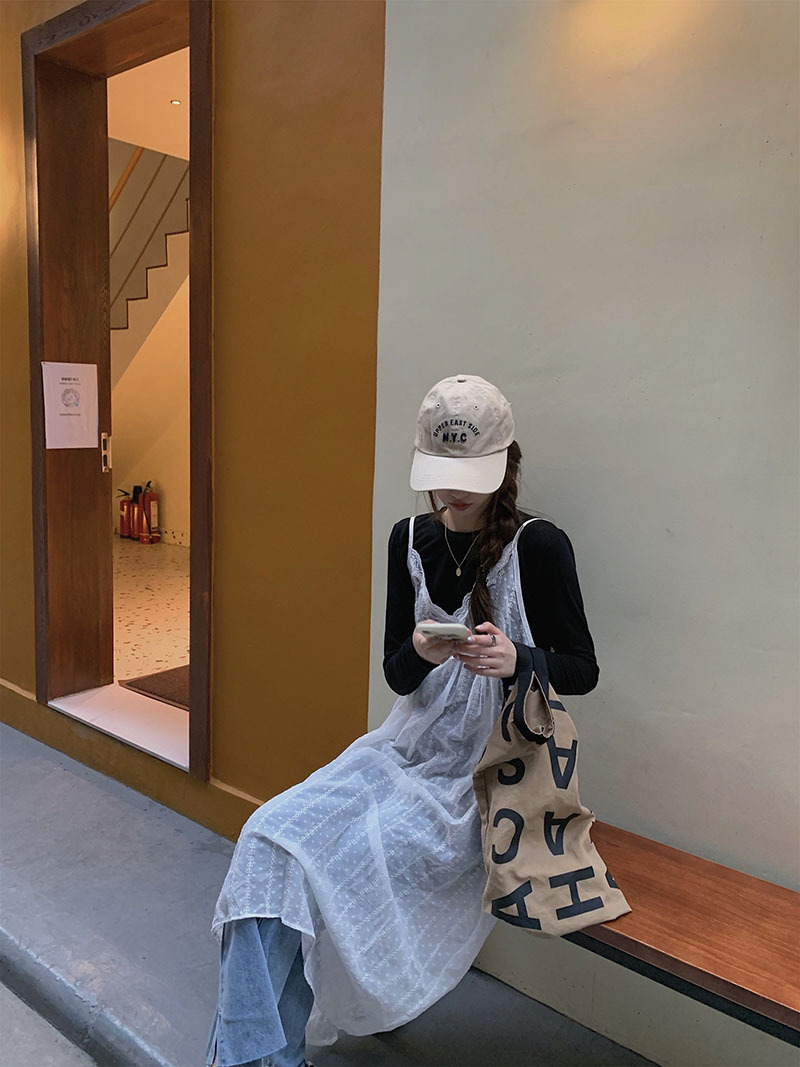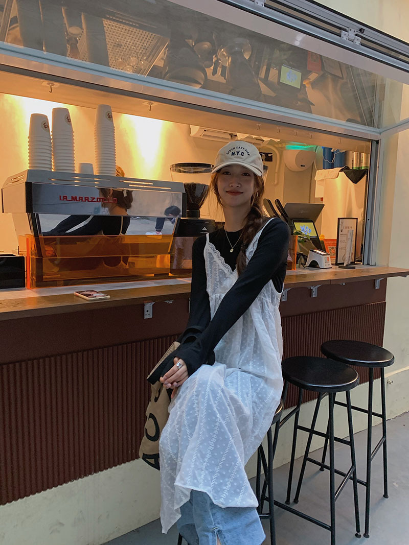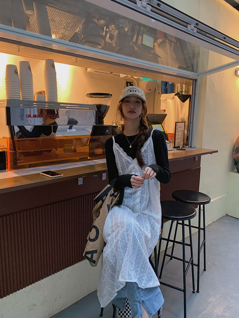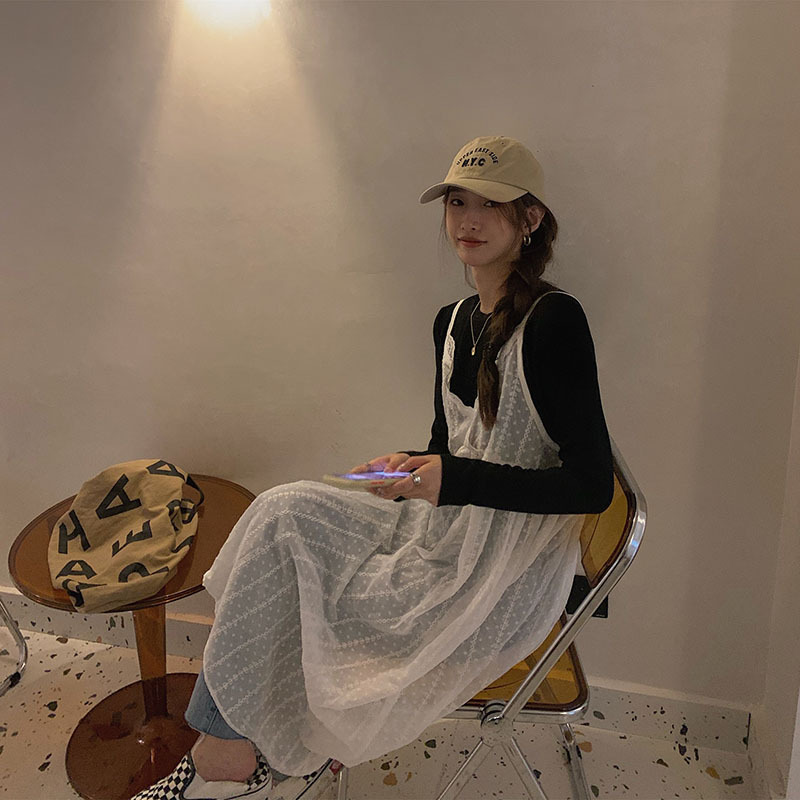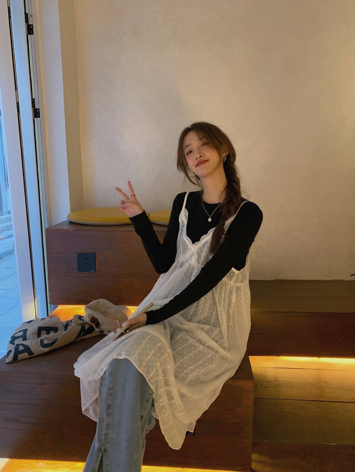 슈퍼 페어리 레이스 슬링 원피스 여성용 2025 새로운 얇은 우아한 화이트 V 넥 중간 길이 A 자형 스커트스토어 가기