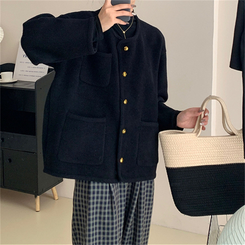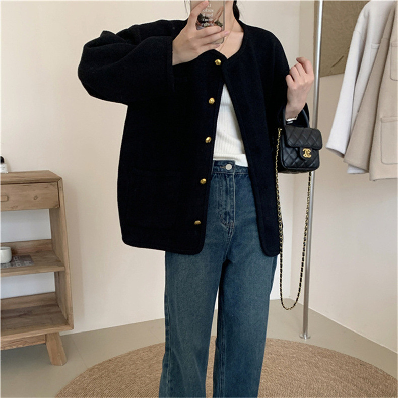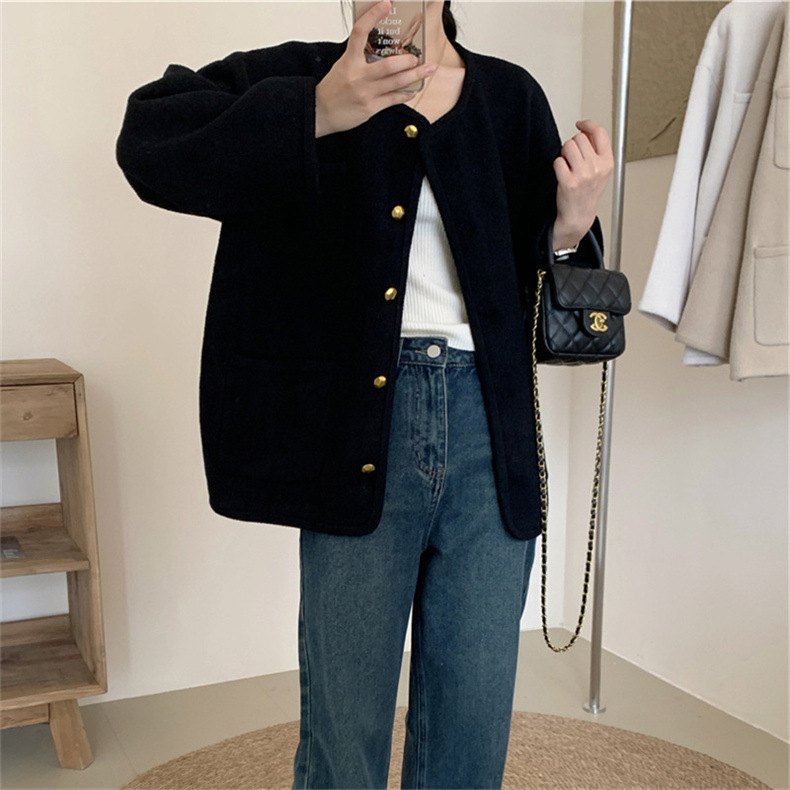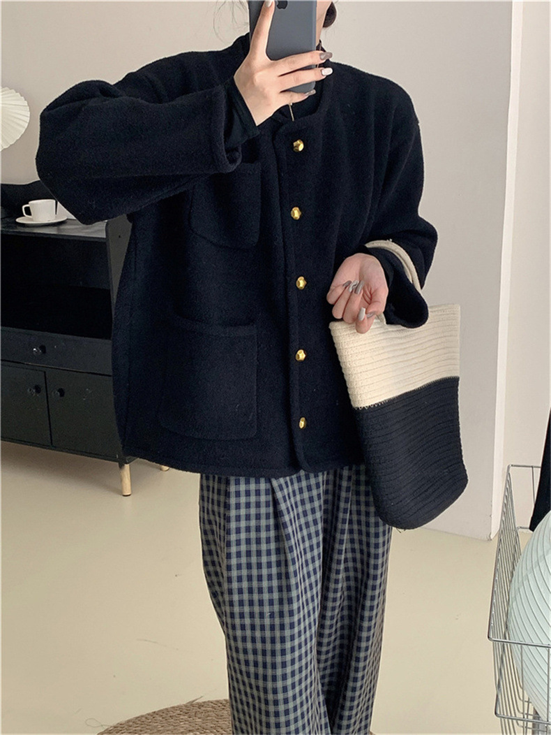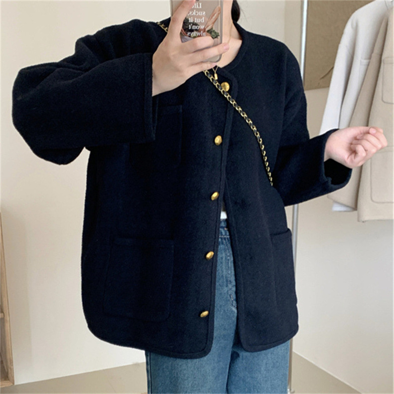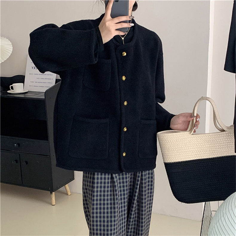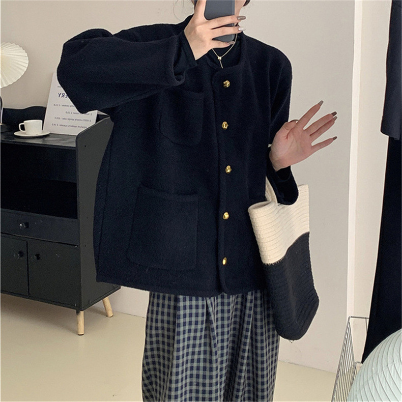 국경 간 봄 새로운 우아한 샤넬 스타일 니트 카디건 여성의 느슨한 게으른 둥근 목 솔리드 컬러 재킷