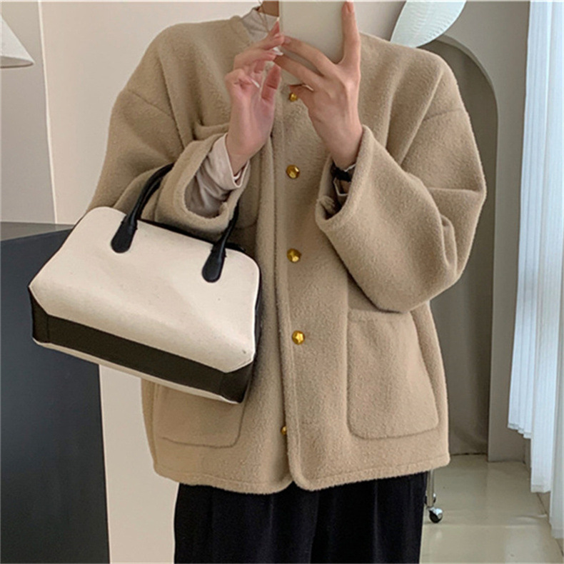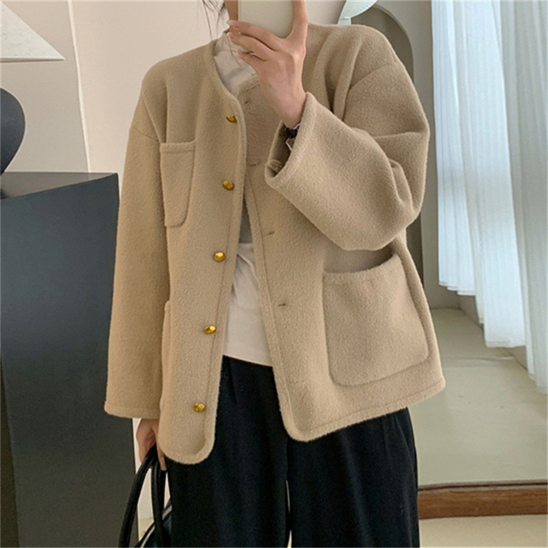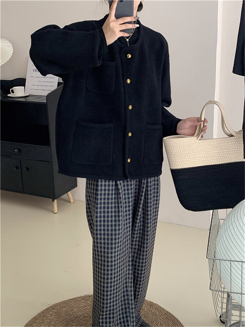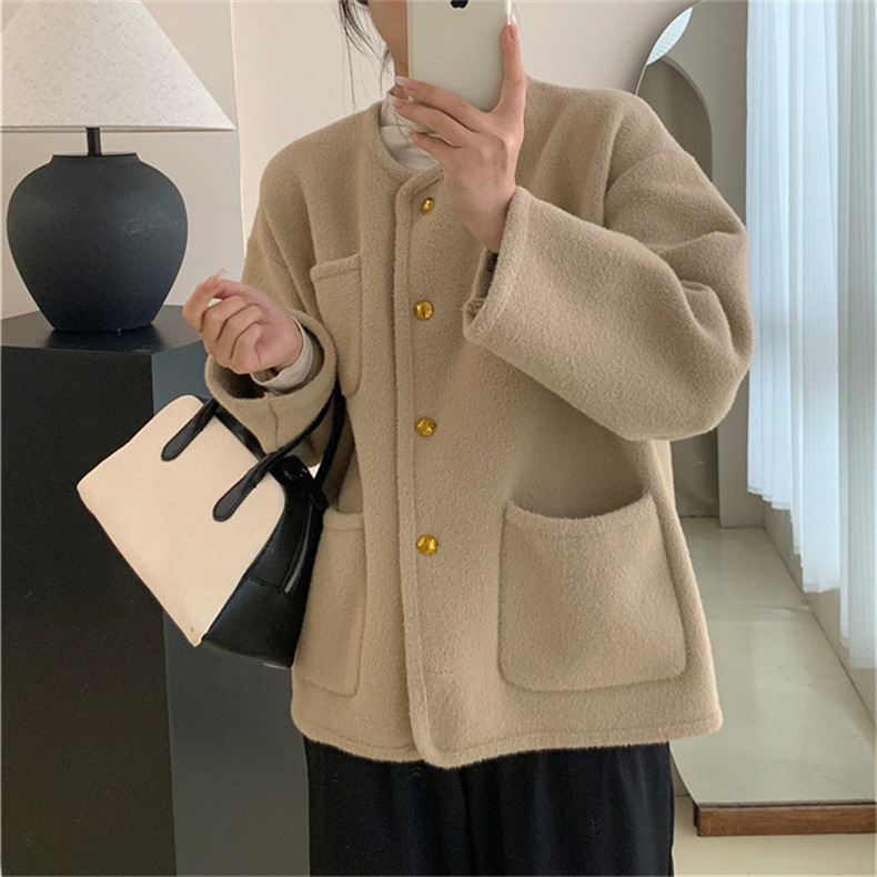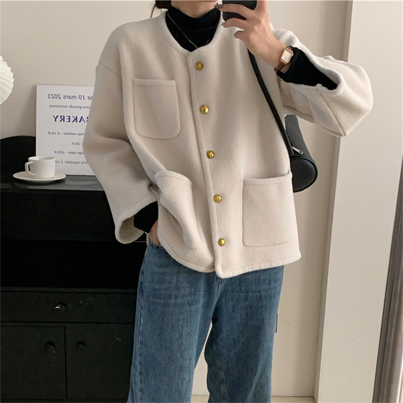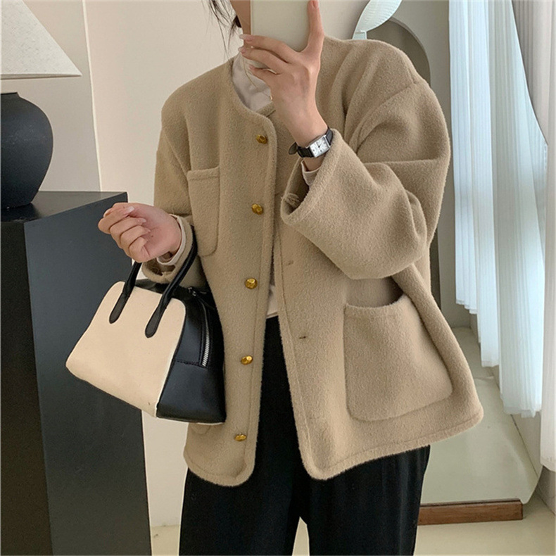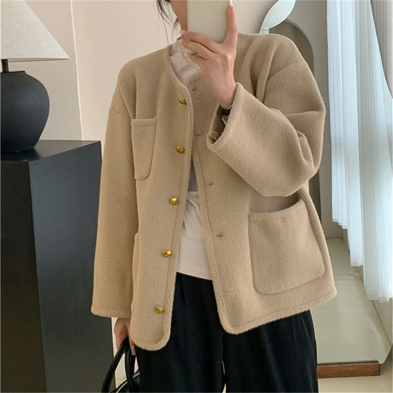국경 간 봄 새로운 우아한 샤넬 스타일 니트 카디건 여성의 느슨한 게으른 둥근 목 솔리드 컬러 재킷