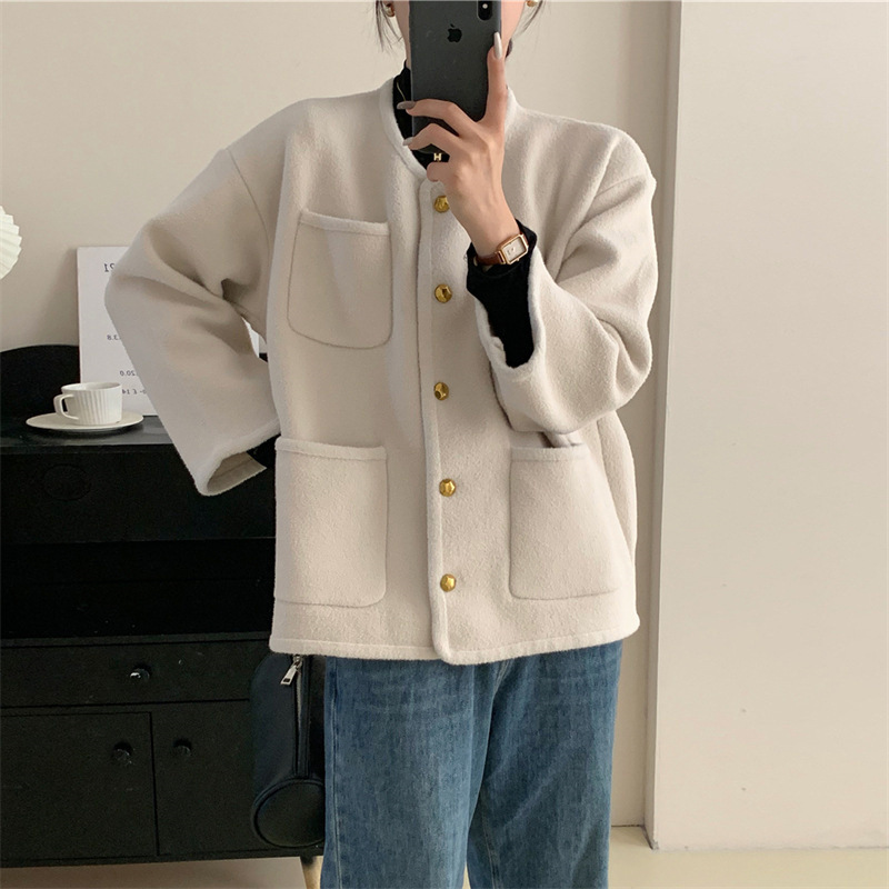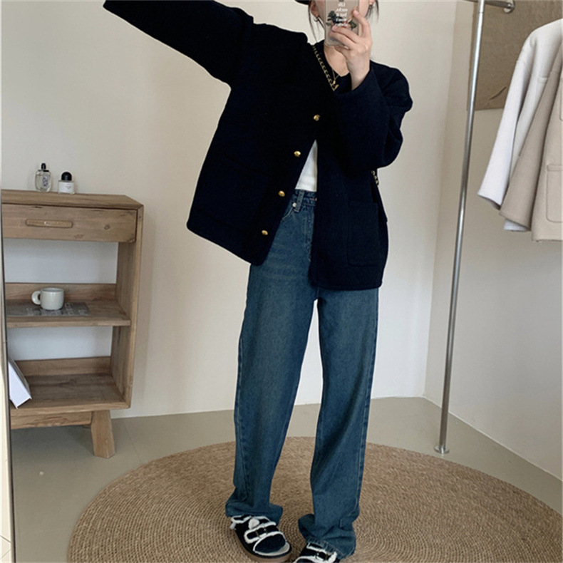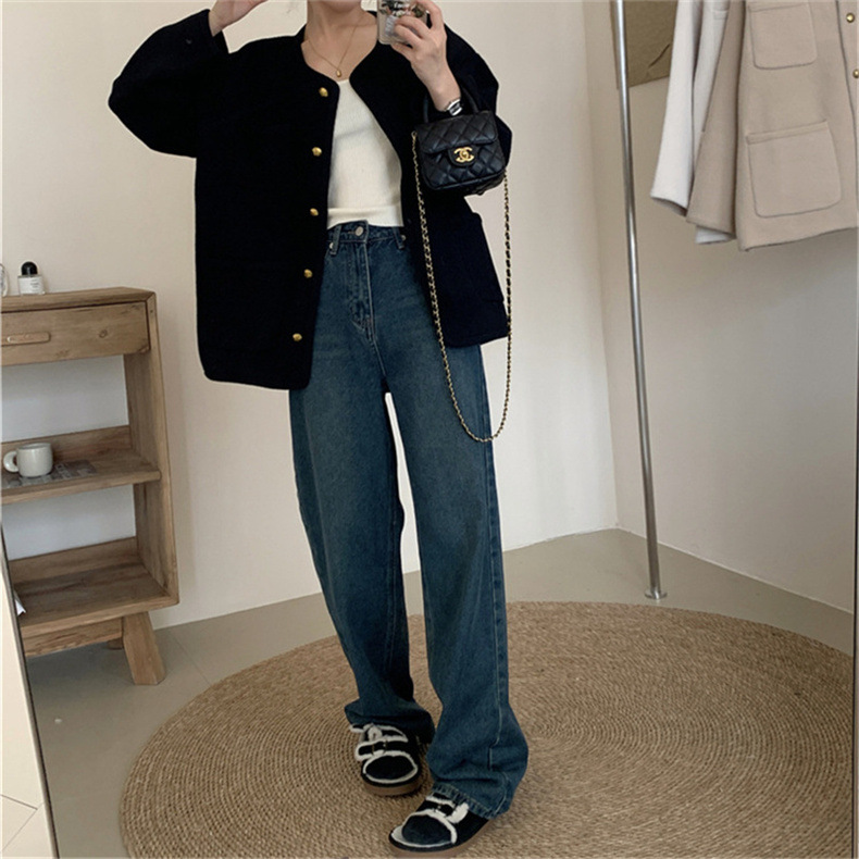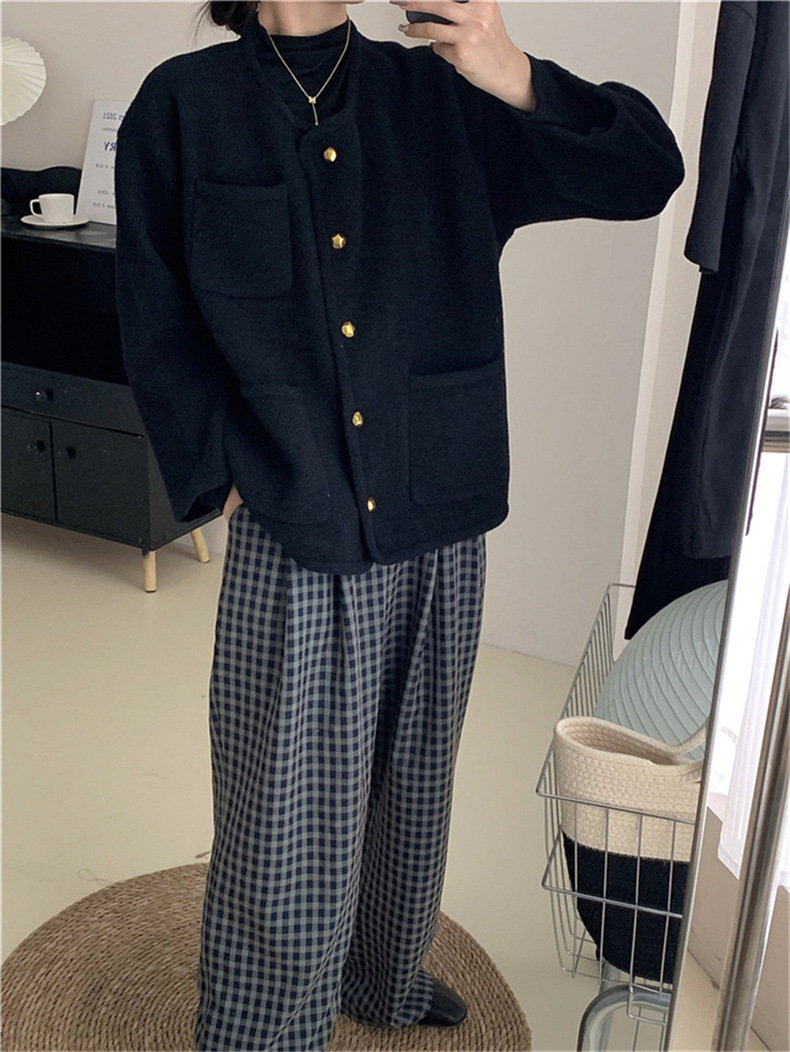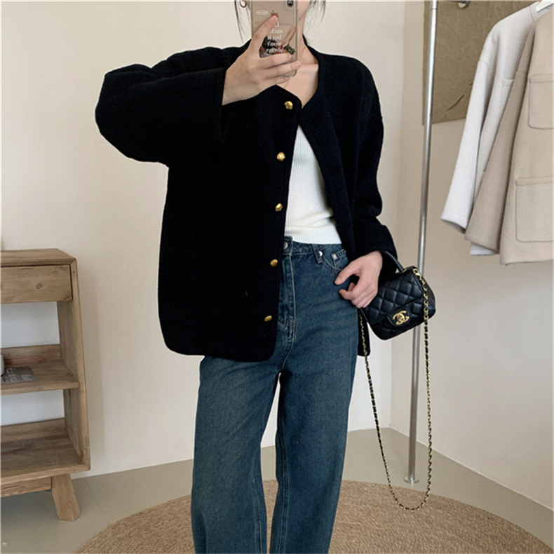 국경 간 봄 새로운 우아한 샤넬 스타일 니트 카디건 여성의 느슨한 게으른 둥근 목 솔리드 컬러 재킷스토어 가기