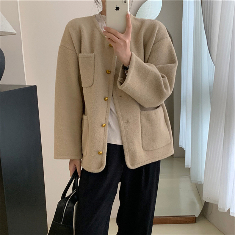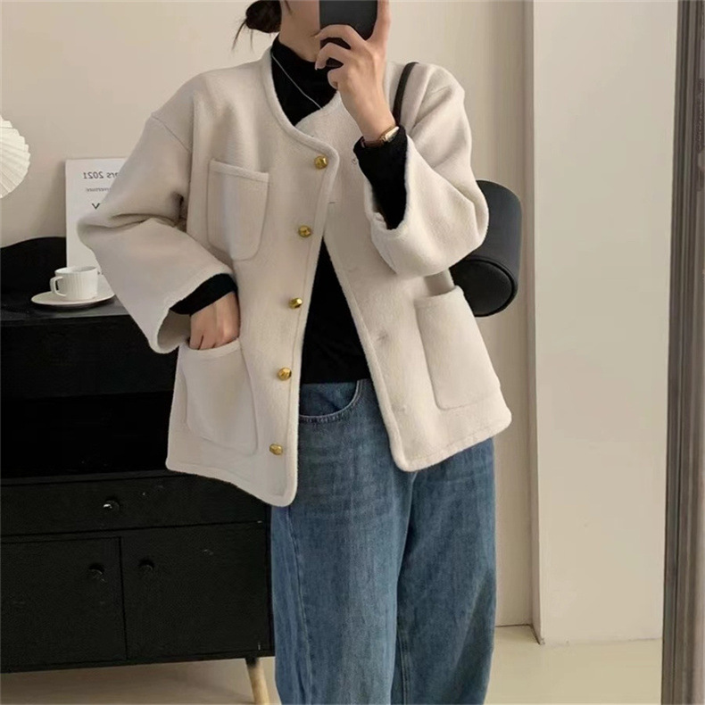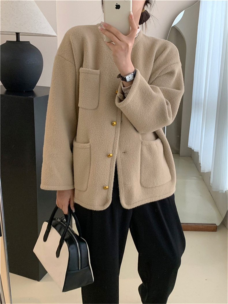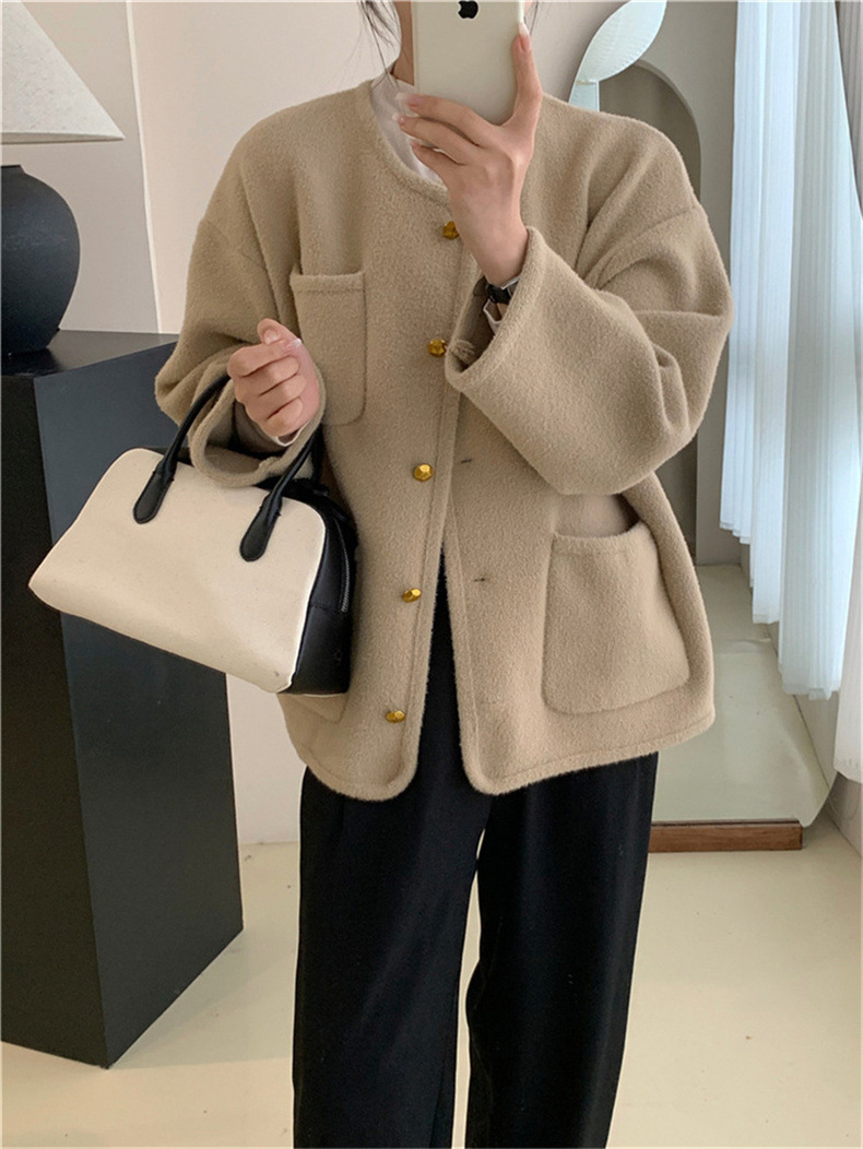국경 간 봄 새로운 우아한 샤넬 스타일 니트 카디건 여성의 느슨한 게으른 둥근 목 솔리드 컬러 재킷스토어 가기