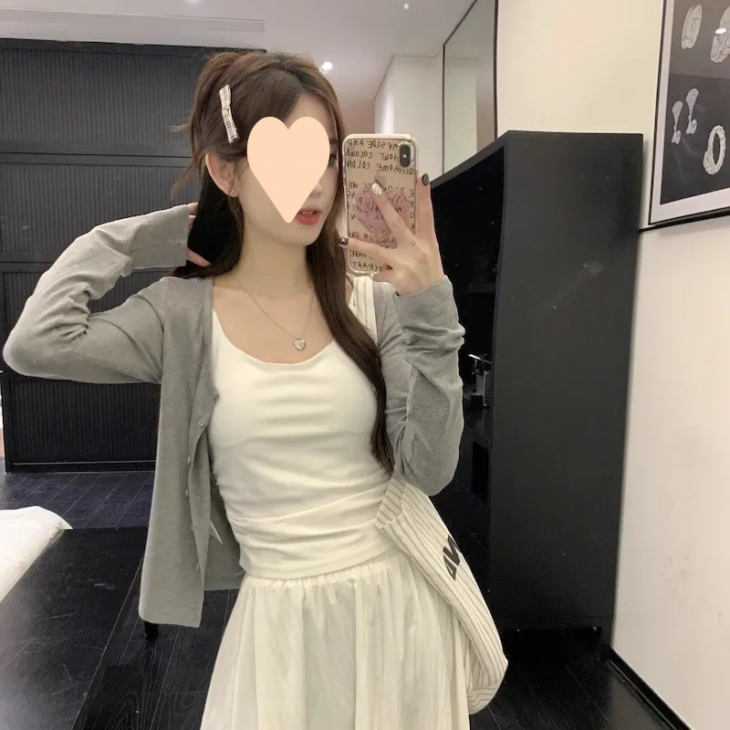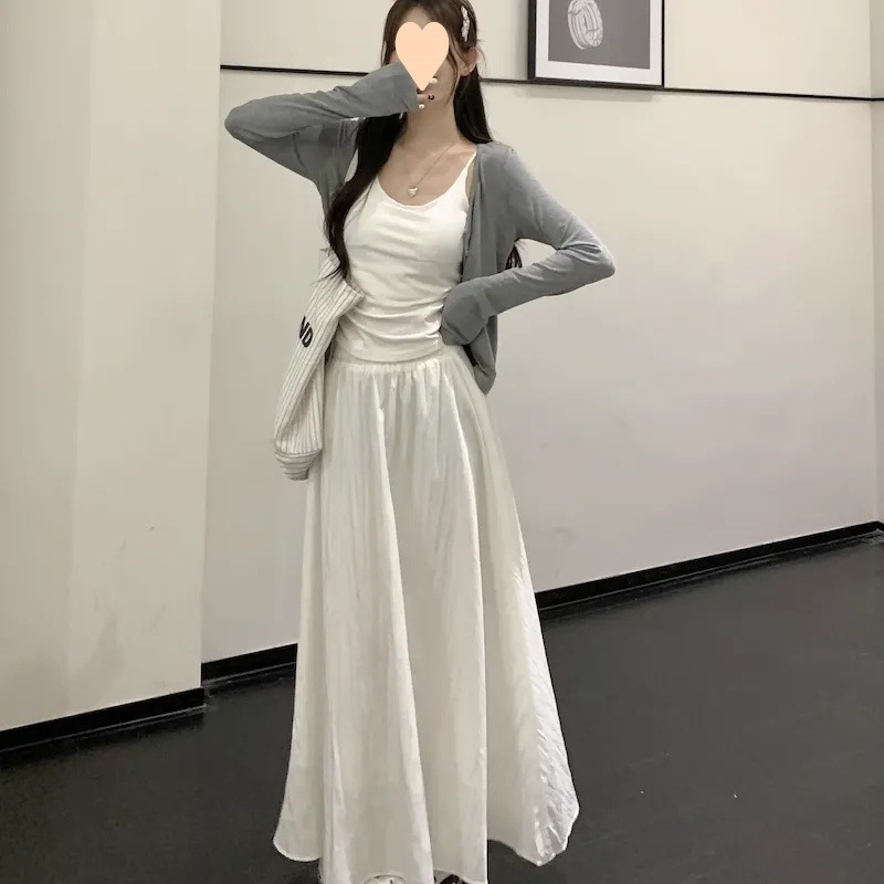 한국 스타일 얇은 긴팔 카디건베이스 탑 캐주얼 롱 원피스 여성 봄 2025 새로운 패션 투피스 세트
