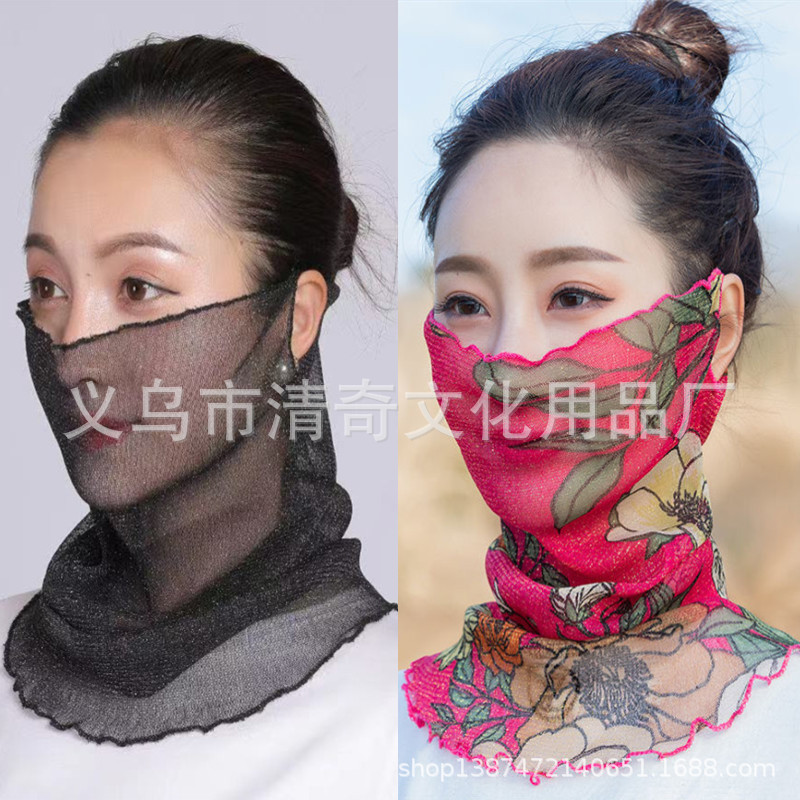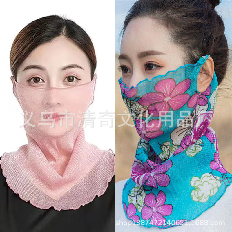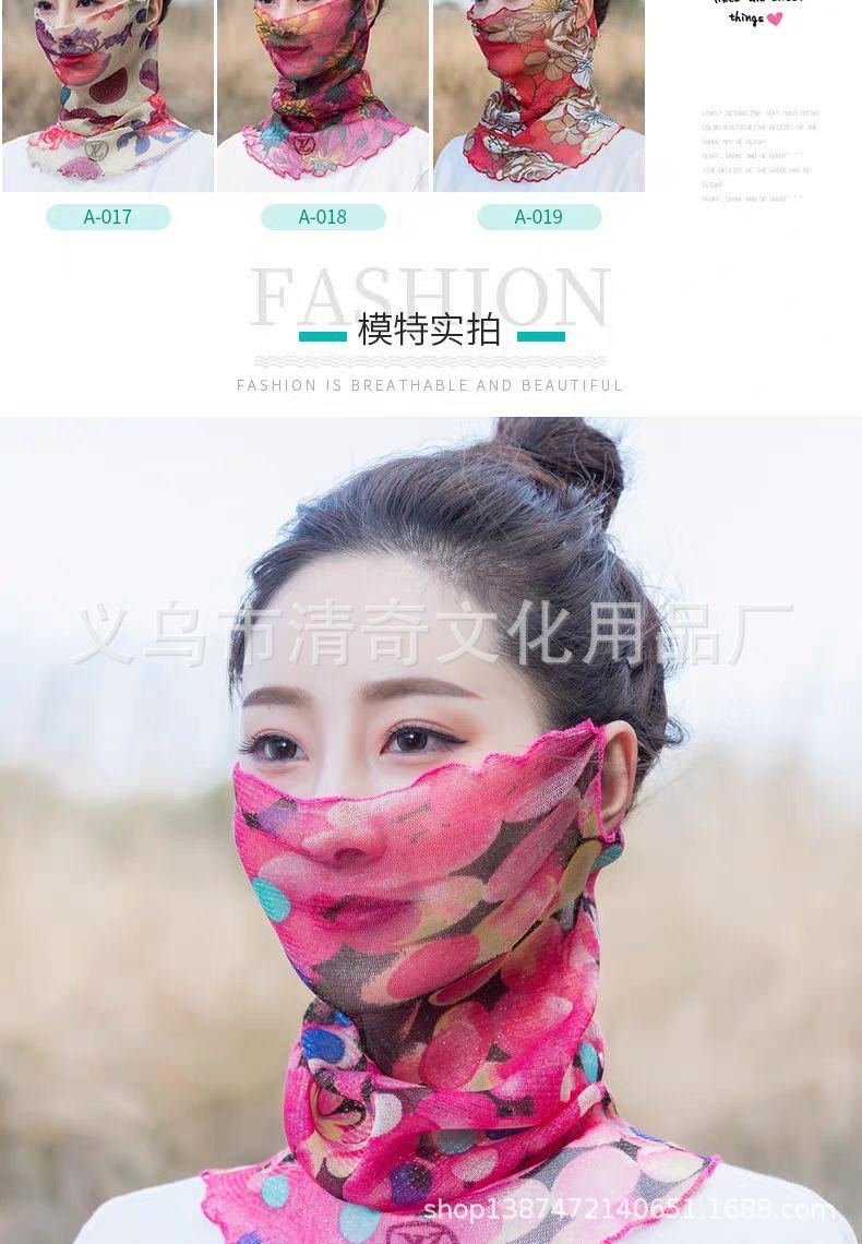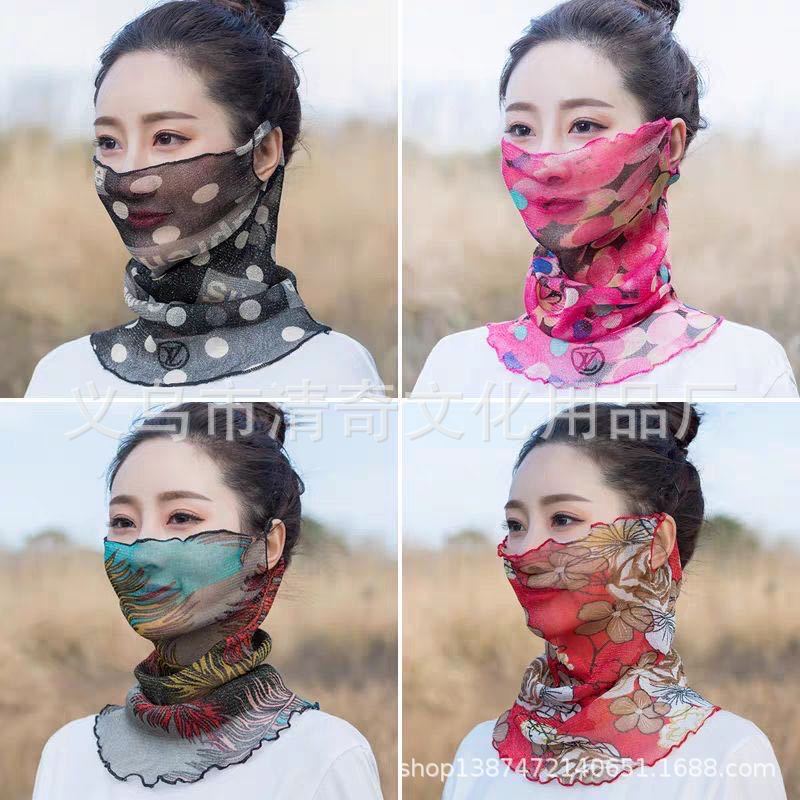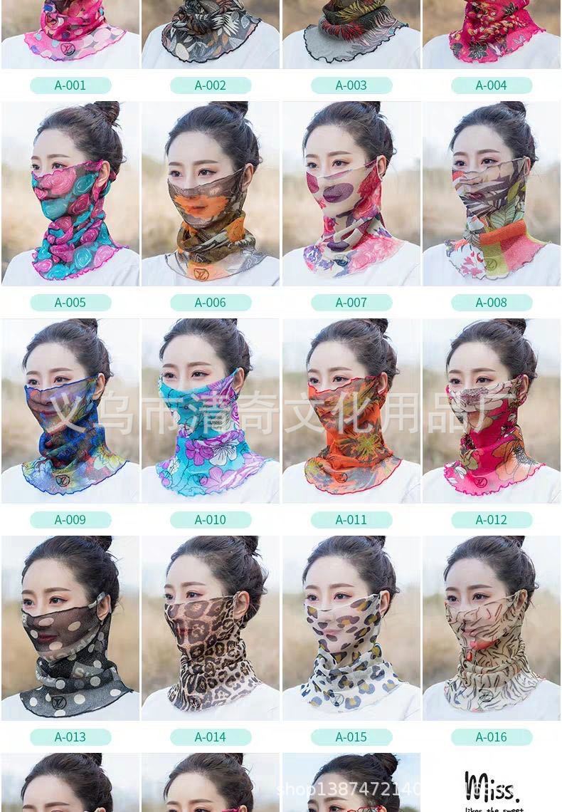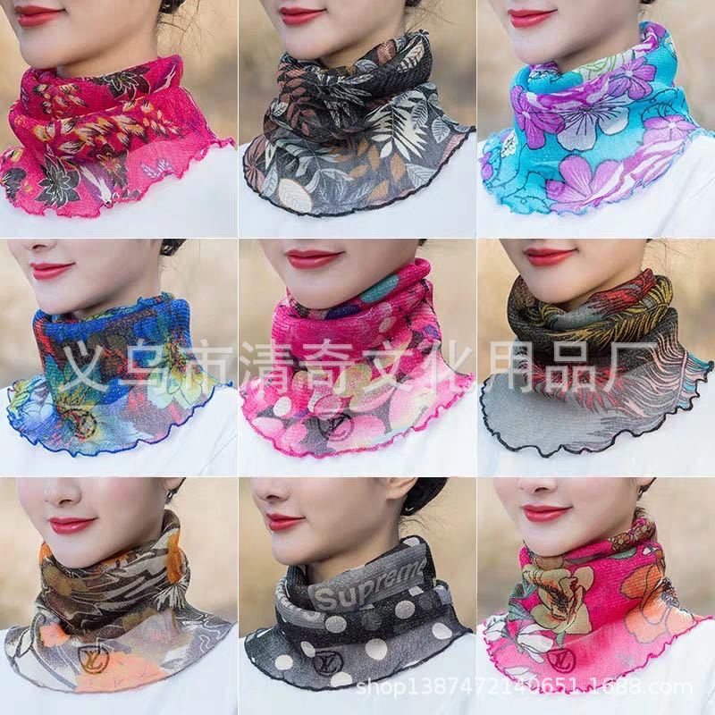 다양한 풀오버 얇은 태양 보호 베일 작은 실크 스카프 목 보호 목에 매달린 귀 마스크 여성용 스카프스토어 가기