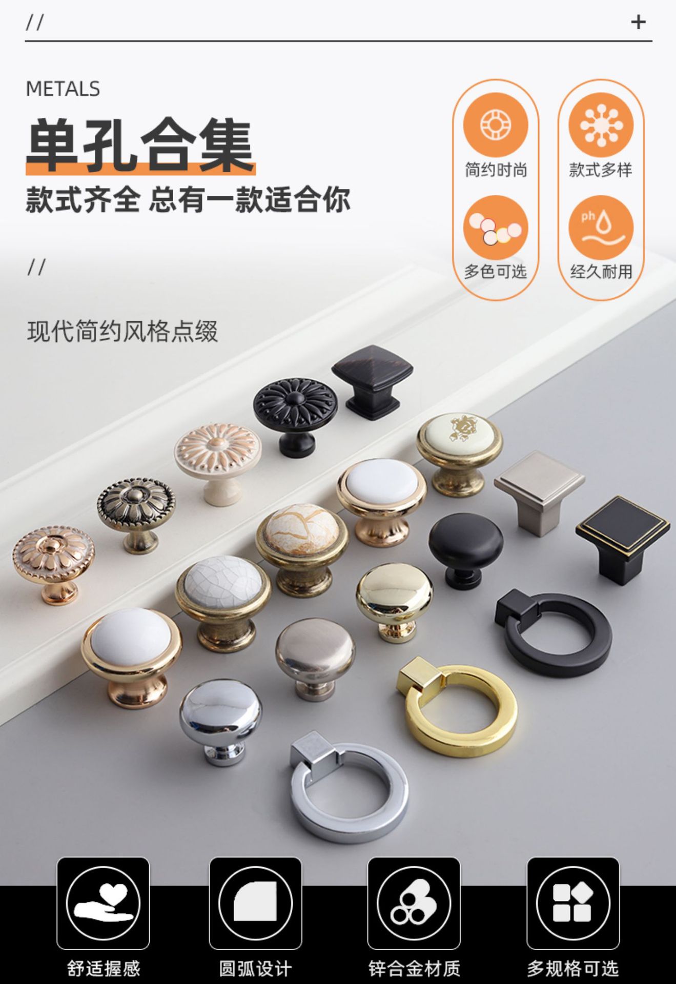 M & M & 옷장 골든 화이트 싱글 홀 라운드 핸들러 서랍 세라믹 블랙 캐비닛 도어 캐비닛 신발 캐비닛 캐비닛 풀 링