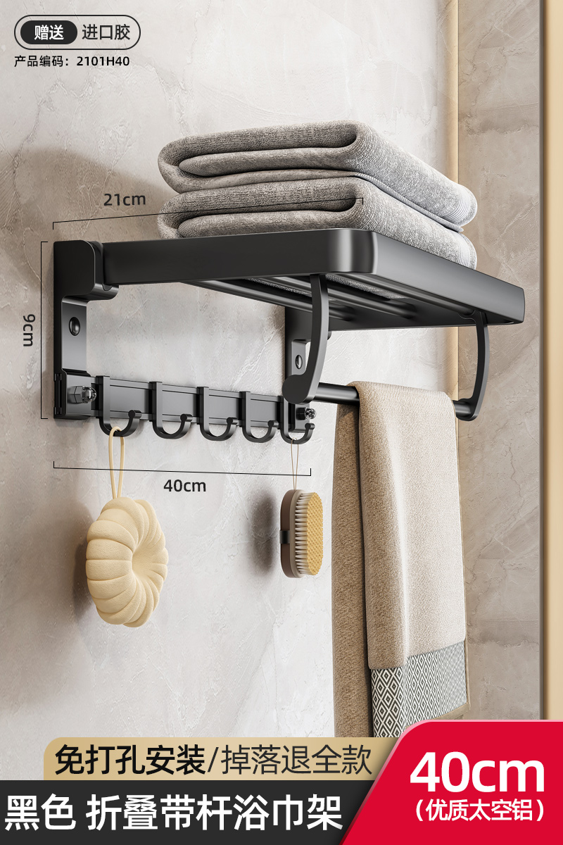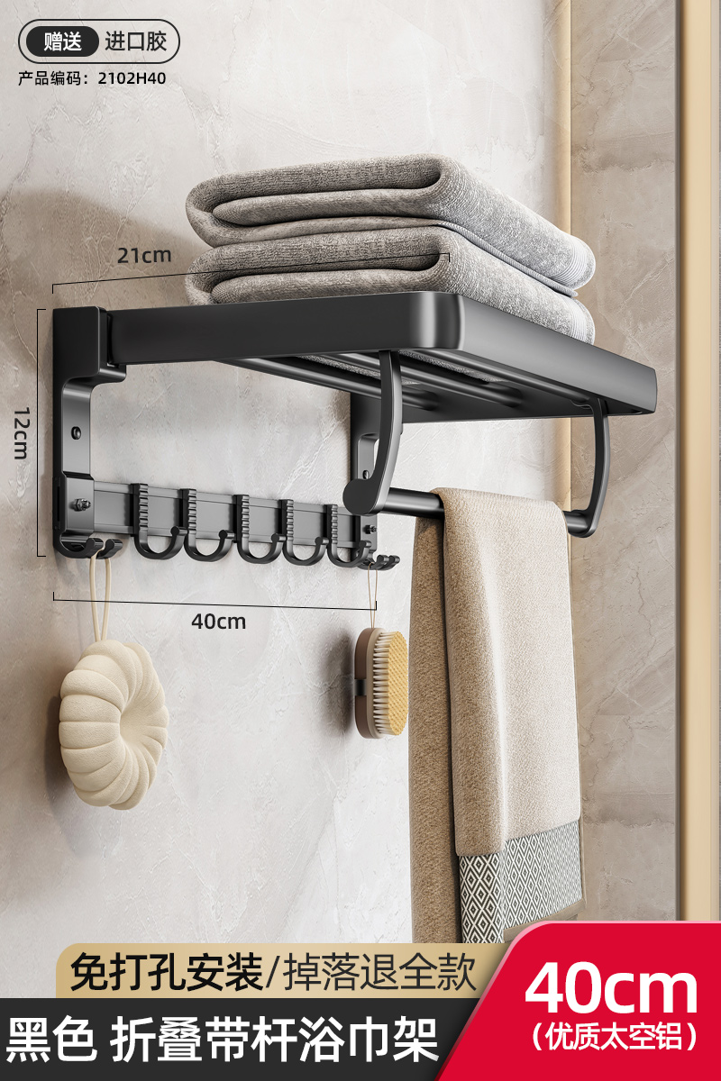 • [업그레이드 모델] 블랙 40CM 목욕타월걸이
