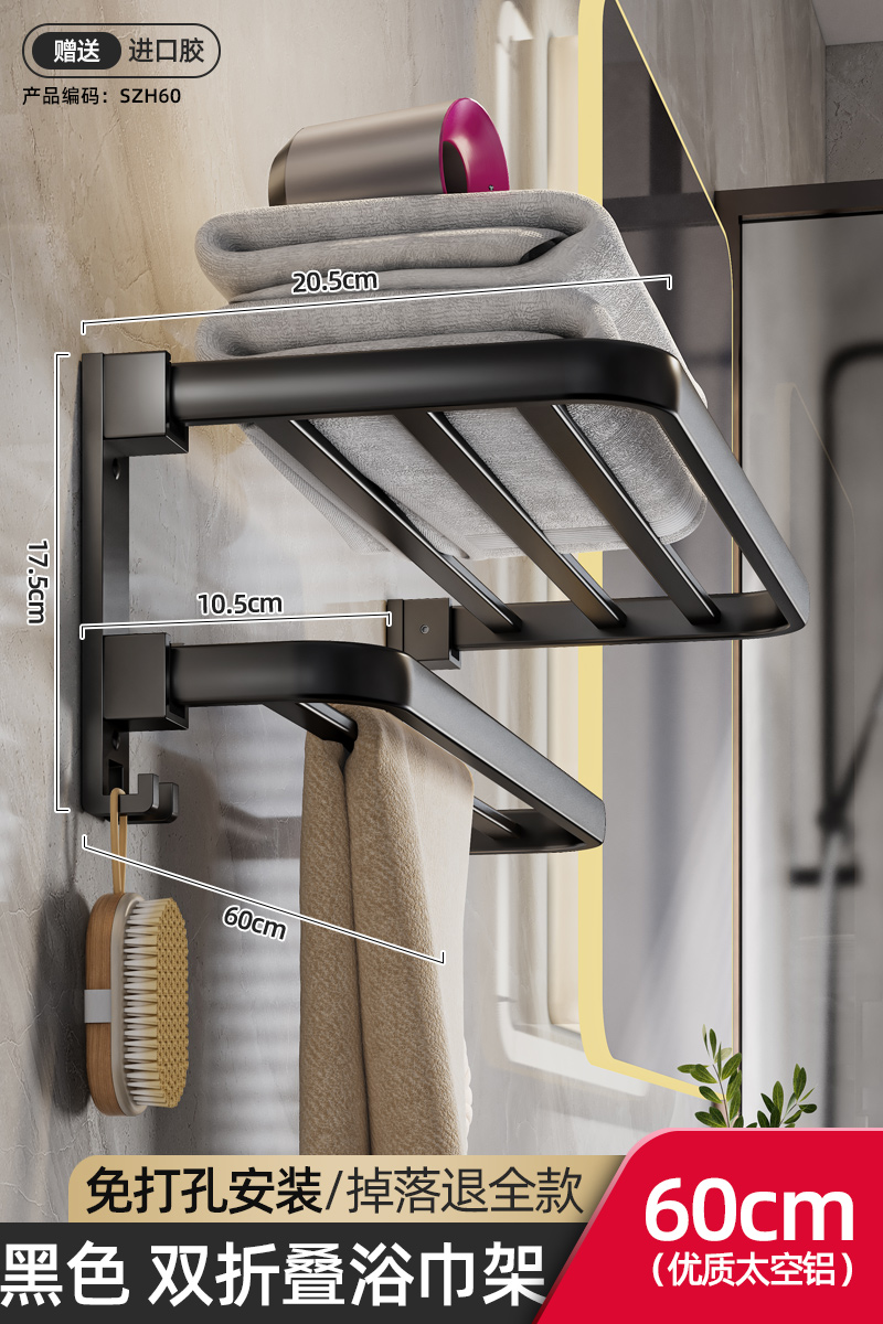 • [이중모델] 블랙 60CM 목욕타월걸이