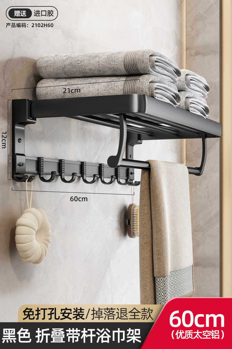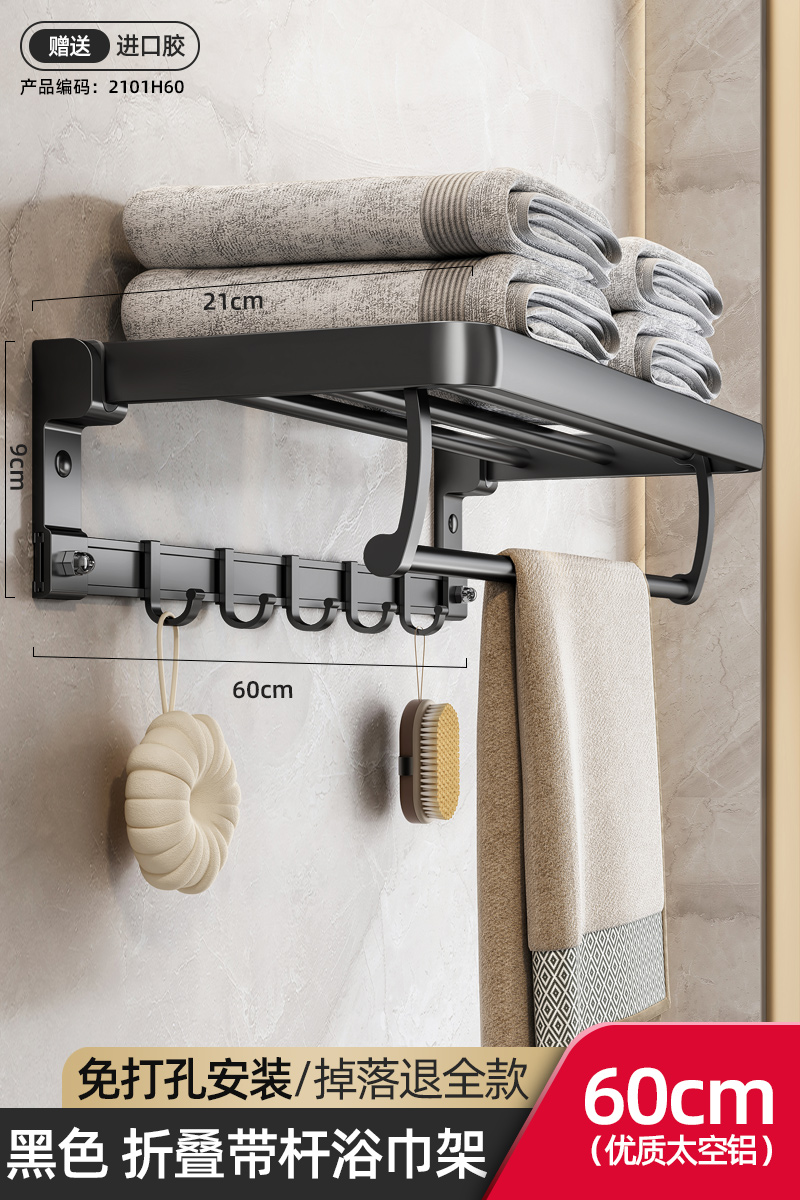 • [업그레이드 모델] 블랙 60CM 목욕타월걸이