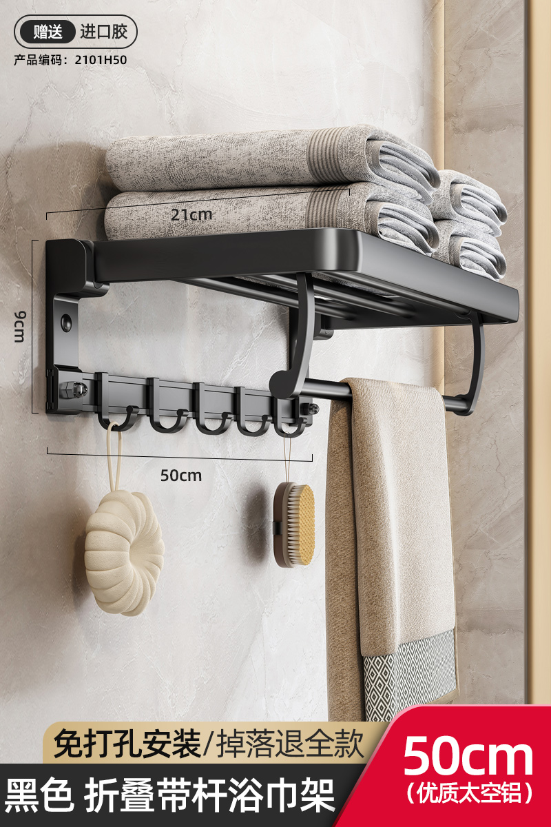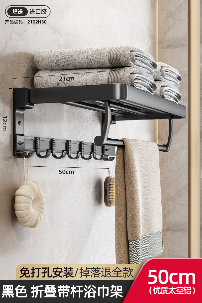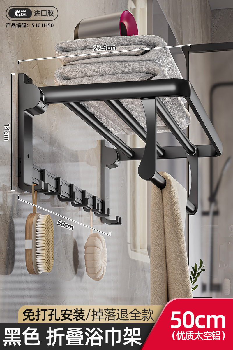 • [업그레이드 모델] 블랙 50CM 목욕타월걸이