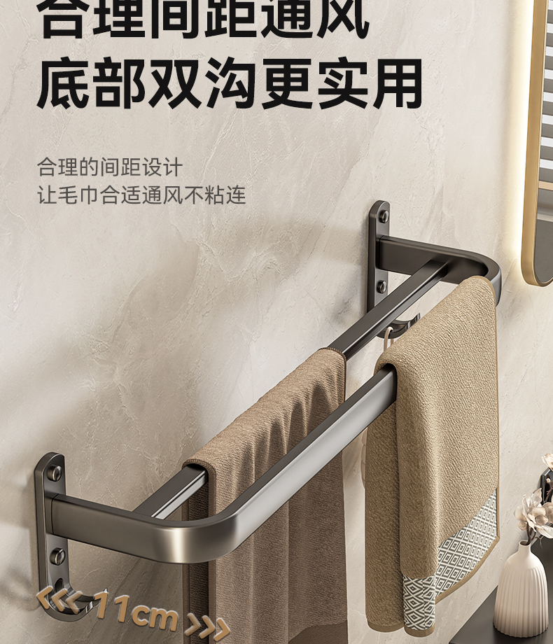 • [업그레이드된 증점] 건그레이 50CM/목욕타월걸이