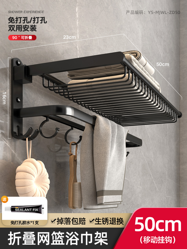• [접이식 메쉬바구니 모델] 블랙 50CM 목욕타월걸이