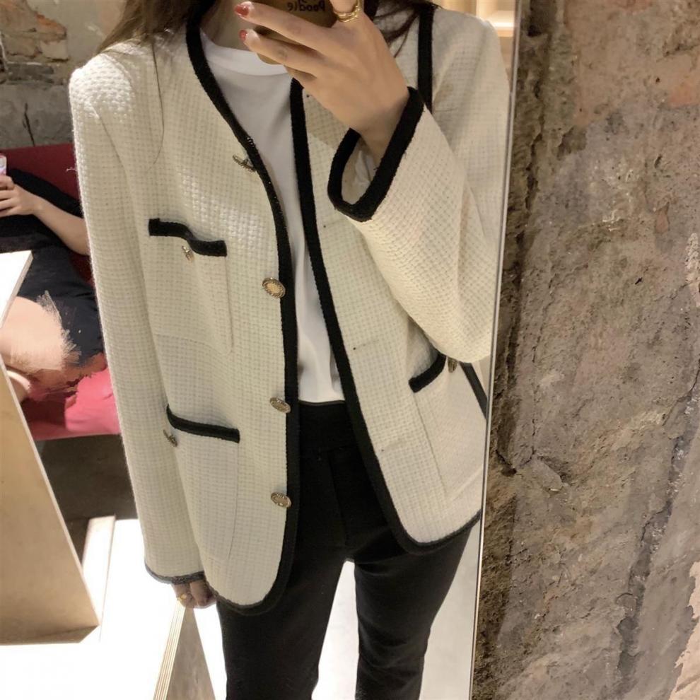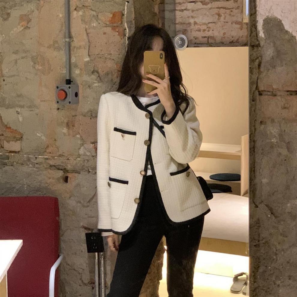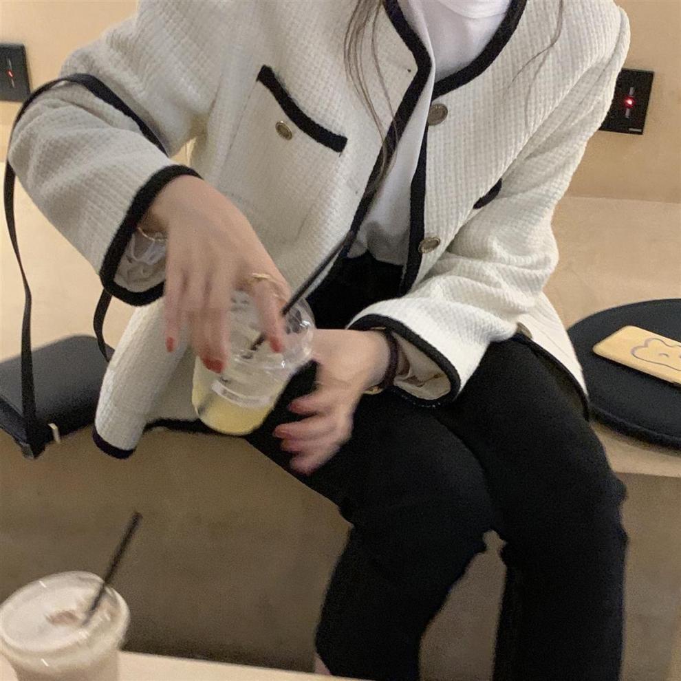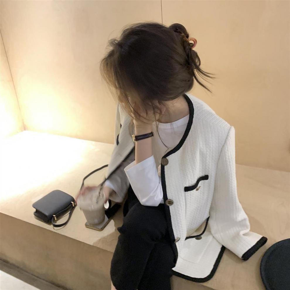 샤오샹 스타일 사교계 서양식 트위드 화이트 쇼트 코트 여성 봄과 가을 한국식 루즈 캐주얼 올 매치 재킷 탑