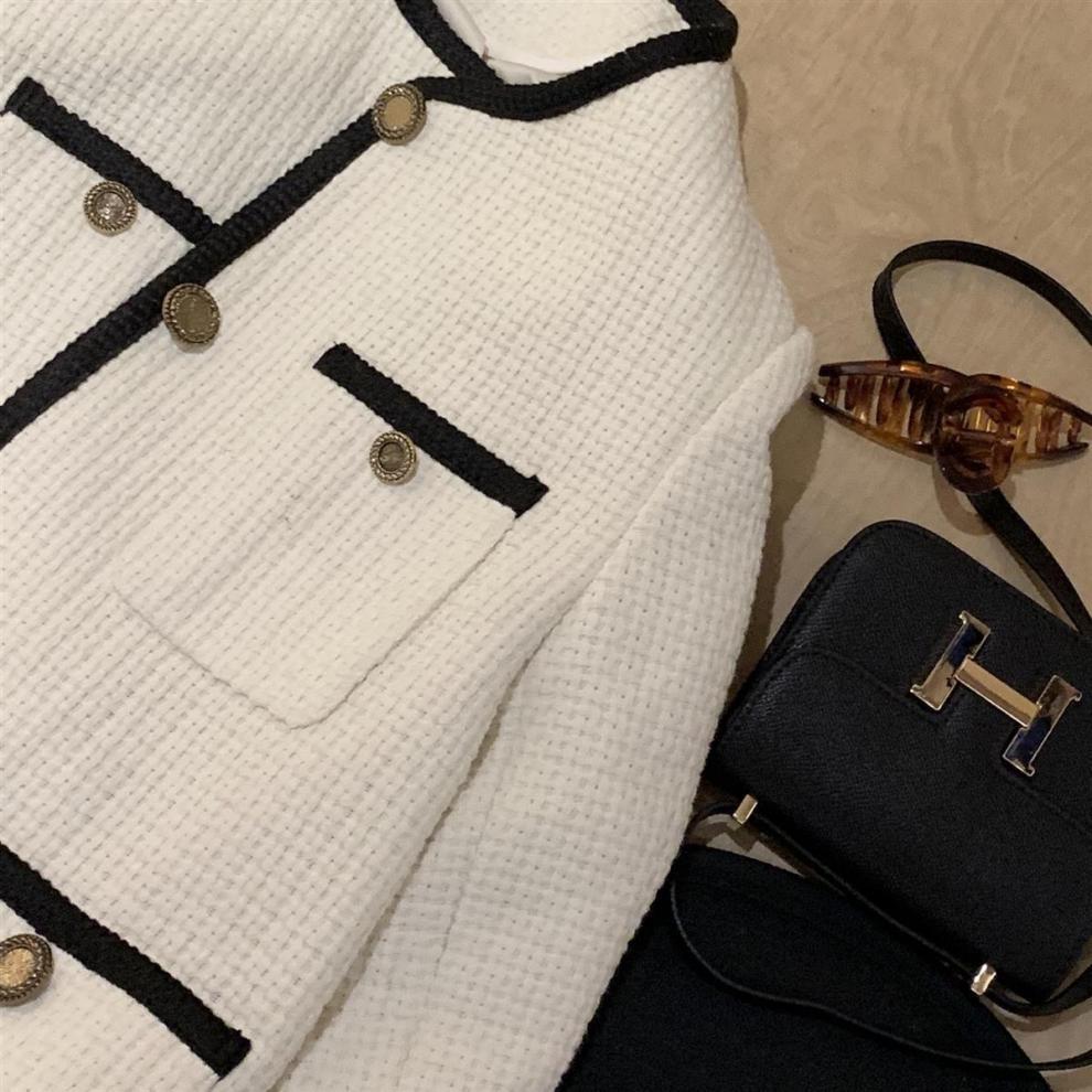 샤오샹 스타일 사교계 서양식 트위드 화이트 쇼트 코트 여성 봄과 가을 한국식 루즈 캐주얼 올 매치 재킷 탑스토어 가기