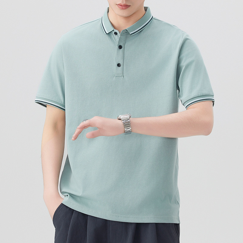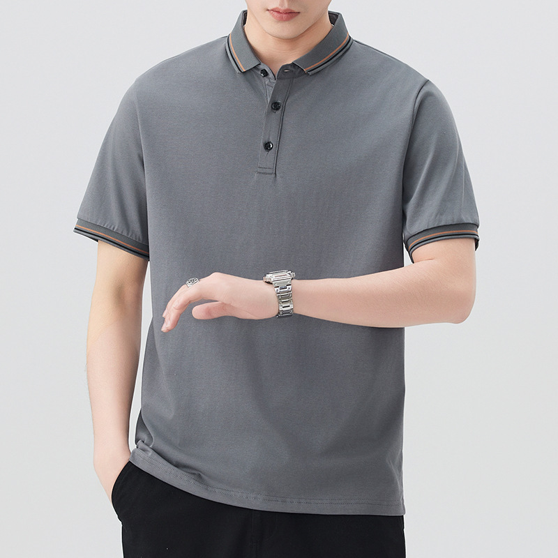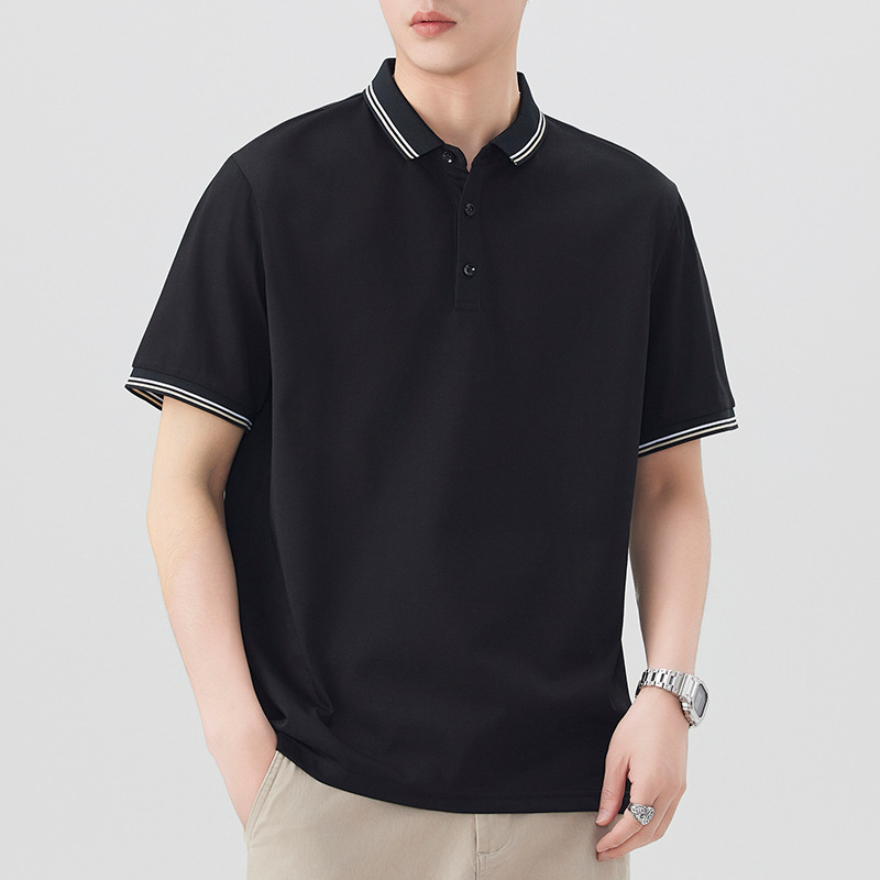 무료 배송 여름 새로운 남성 반팔 셔츠 칼라 옷깃 폴로 셔츠 남성 비즈니스 캐주얼 아이스 실크 올 매치 티셔츠 남성 트렌디스토어 가기