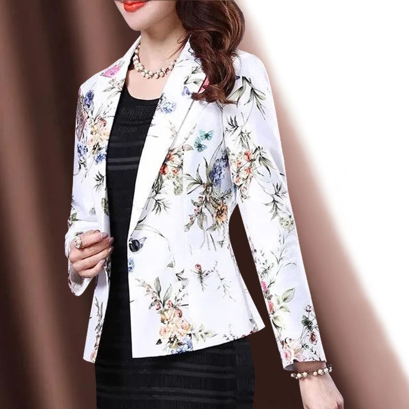 봄 코트 여성의 짧은 플러스 사이즈 인쇄 긴 소매 2025 새로운 중년 올 매치 패션 작은 세트 코트