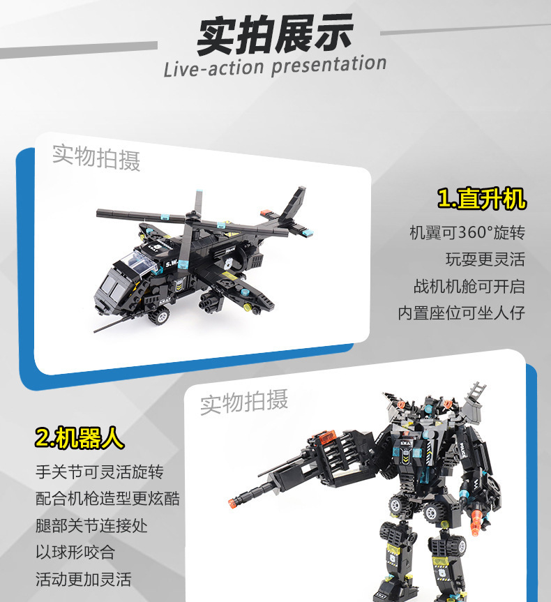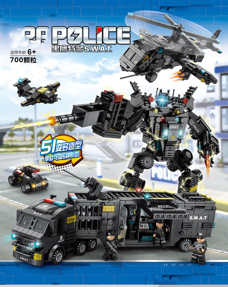 레고 블랙 호크 SWAT 8577 소년 퍼즐 조립 블록 자동차 장난감 어린이 작은 입자 로봇과 호환스토어 가기