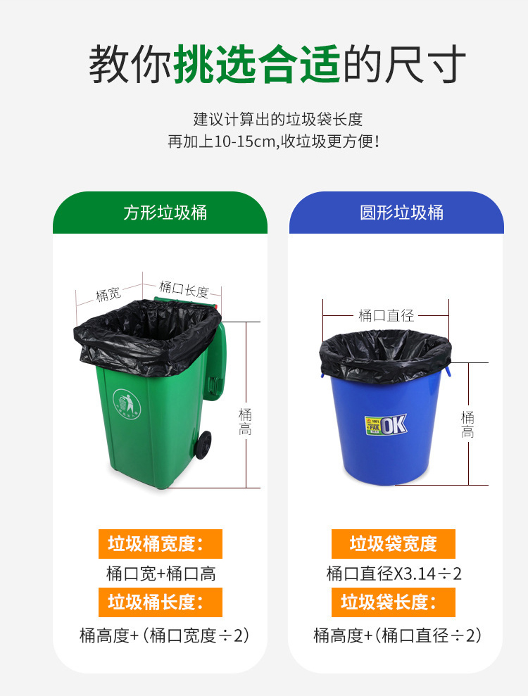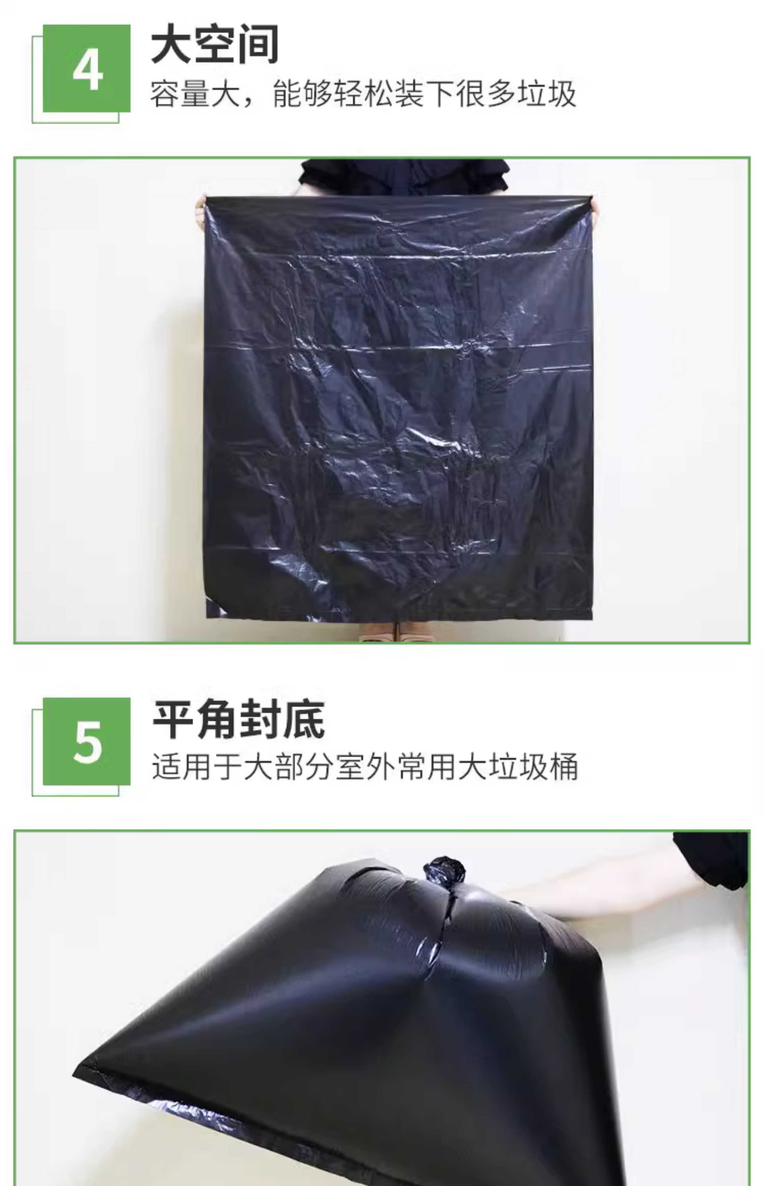 대형 쓰레기 봉투 큰 두꺼운 검은 색 6080 호텔 위생 버킷 재산 상업적인 부엌 플라스틱 옥외 사용