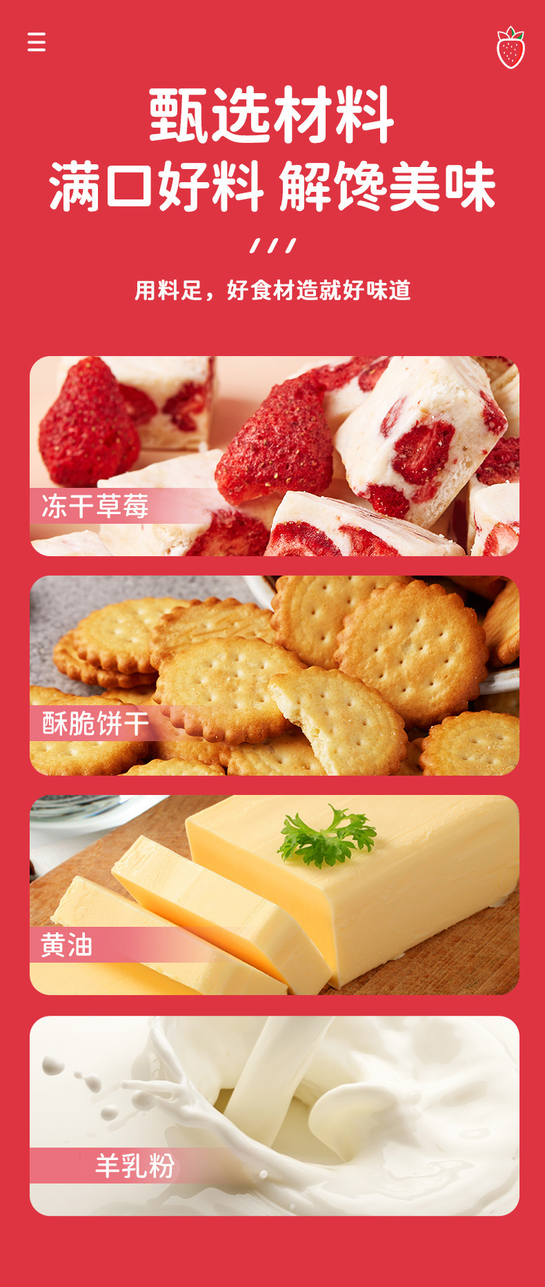 딸기 염소유 수제 눈꽃 케이크 비스킷 과자 간식 누가 사탕 사무실 인기 간식 가공