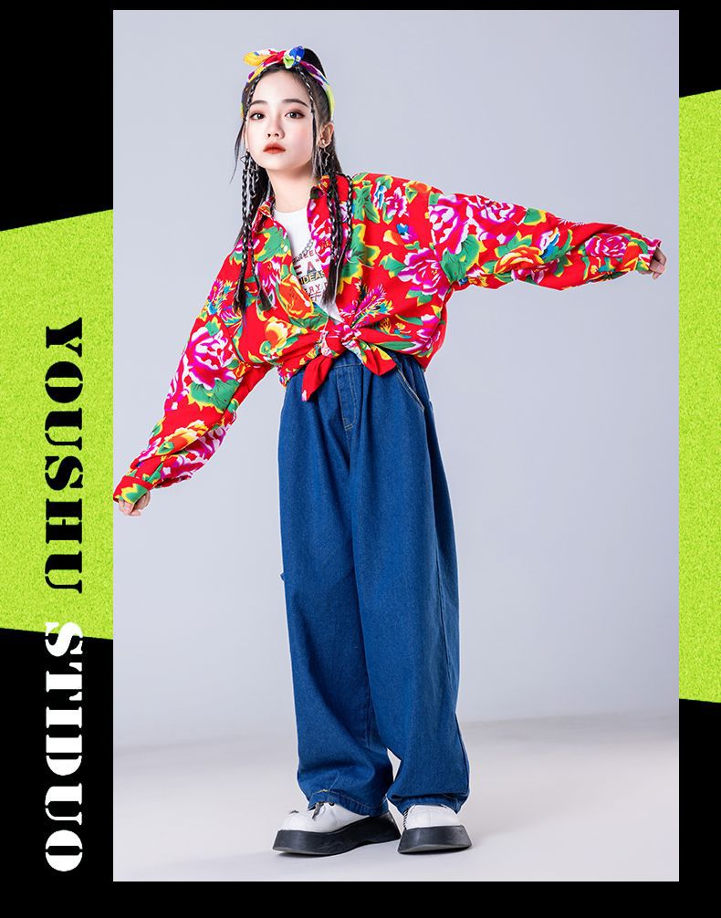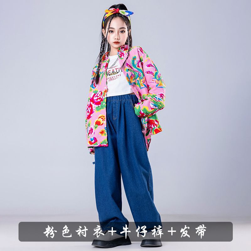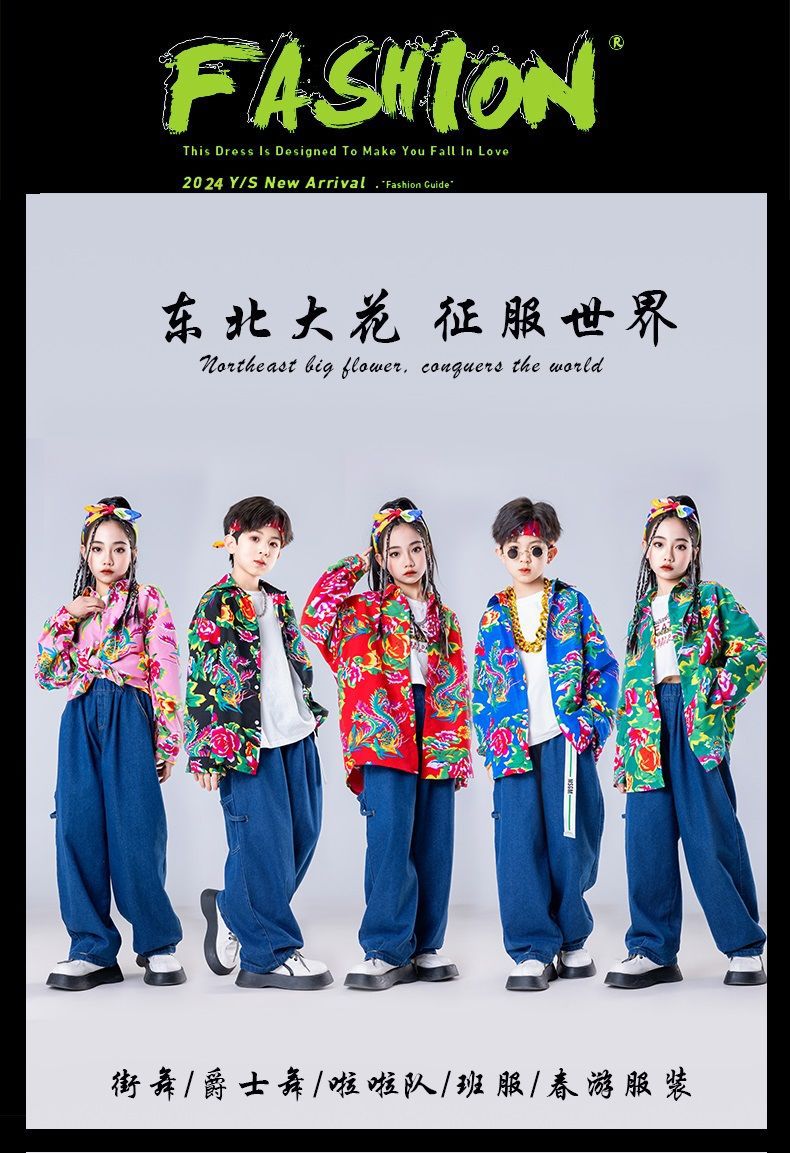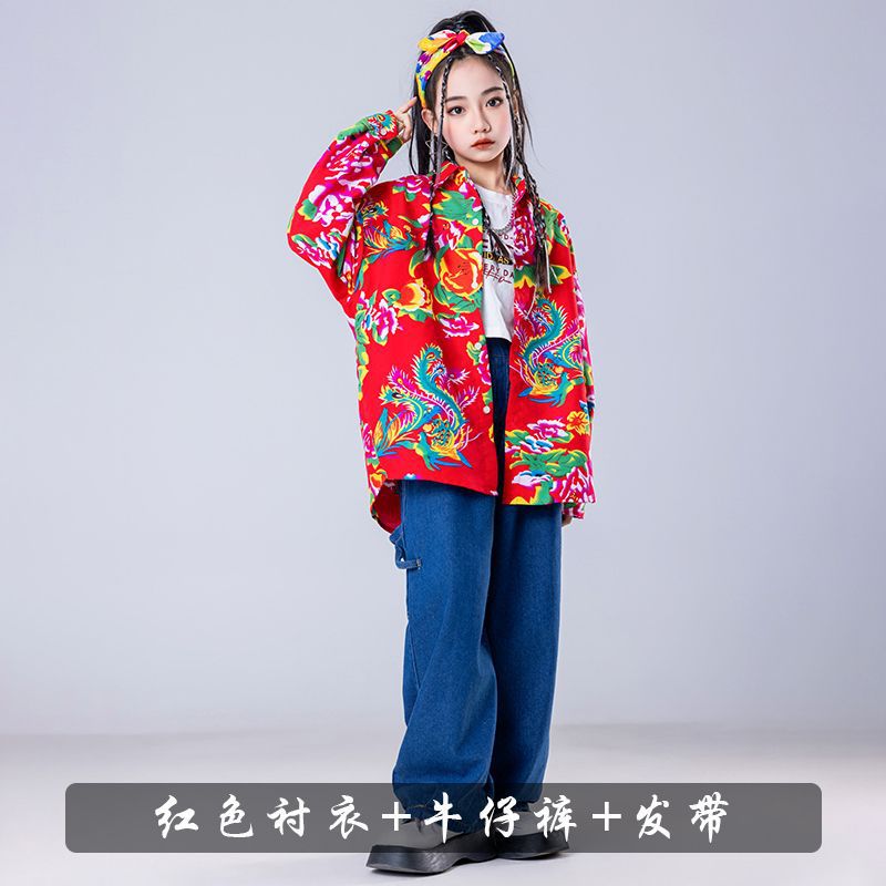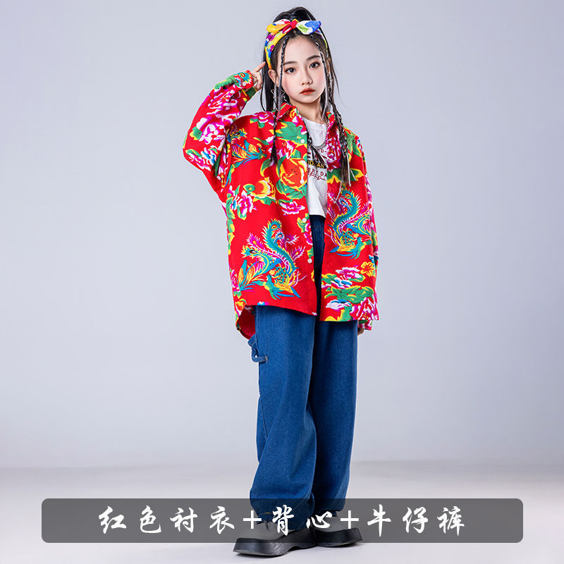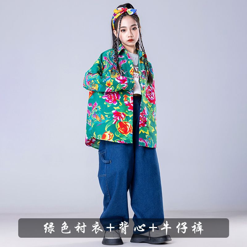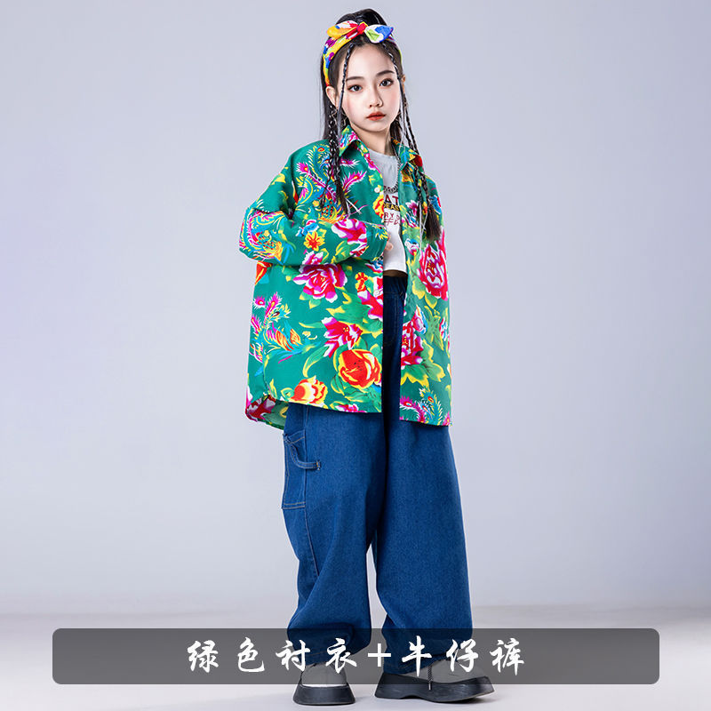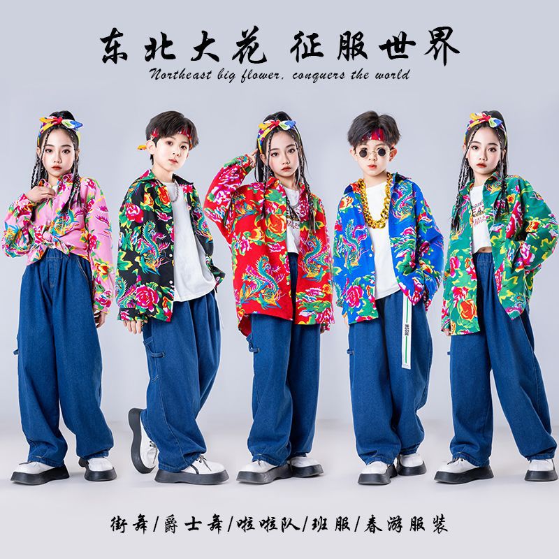 힙합 동북 꽃 천 원래 셔츠 어린이 힙합 패션 세트 어린이 어린이 민족 스타일 공연 세트 봄스토어 가기