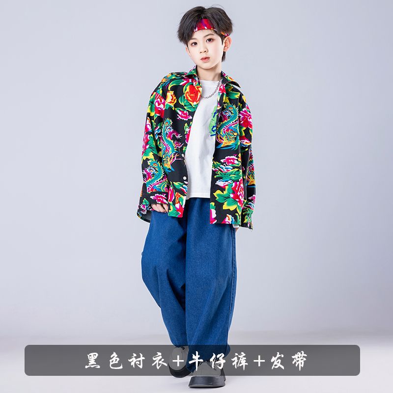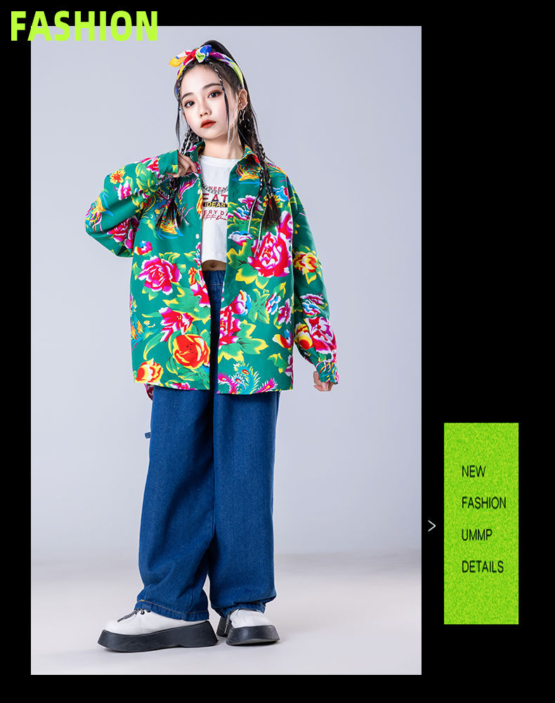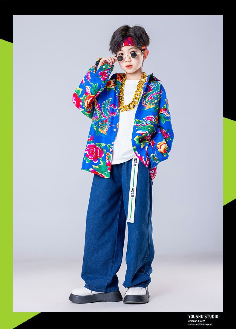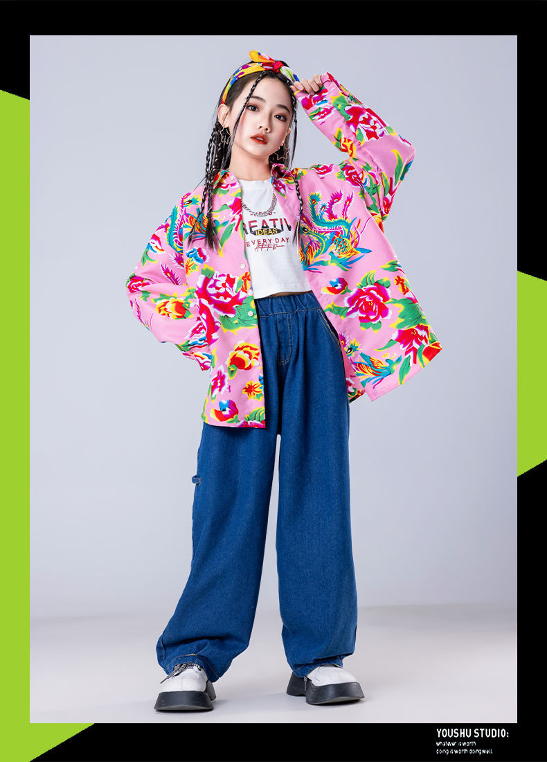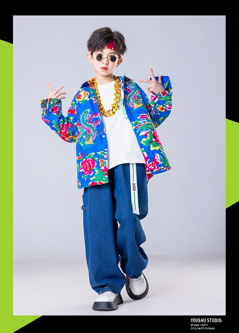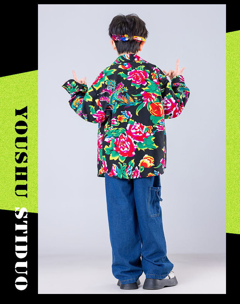 힙합 동북 꽃 천 원래 셔츠 어린이 힙합 패션 세트 어린이 어린이 민족 스타일 공연 세트 봄스토어 가기