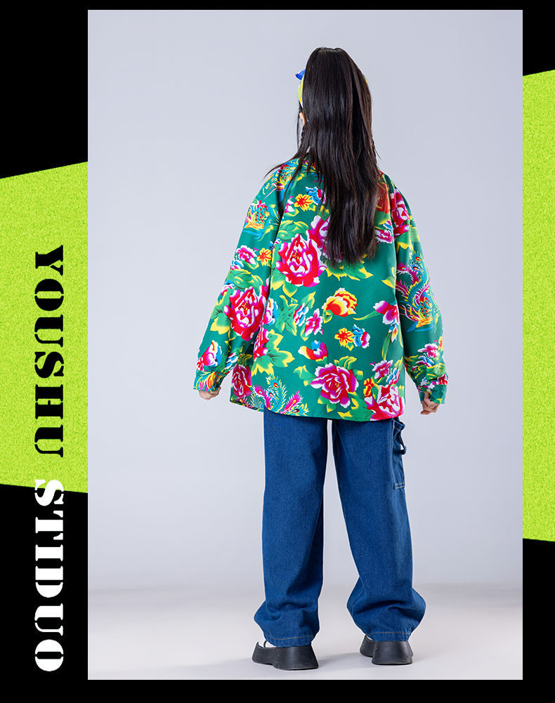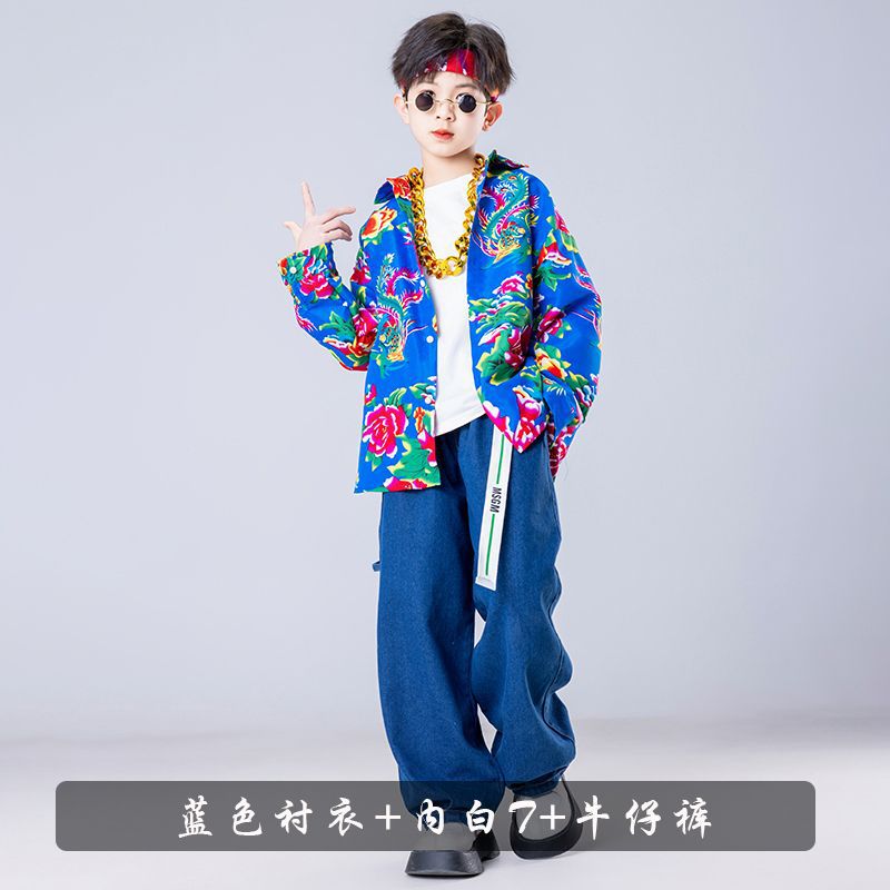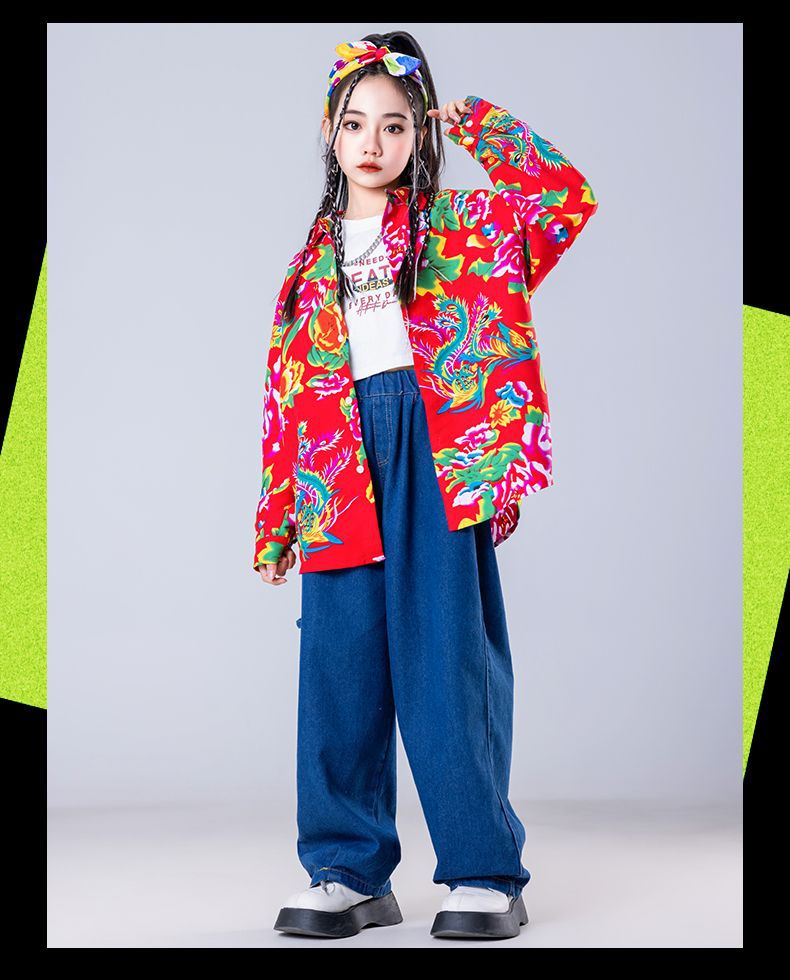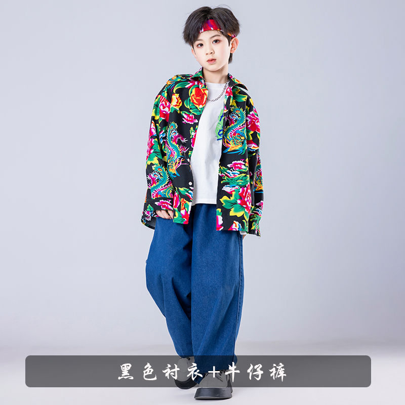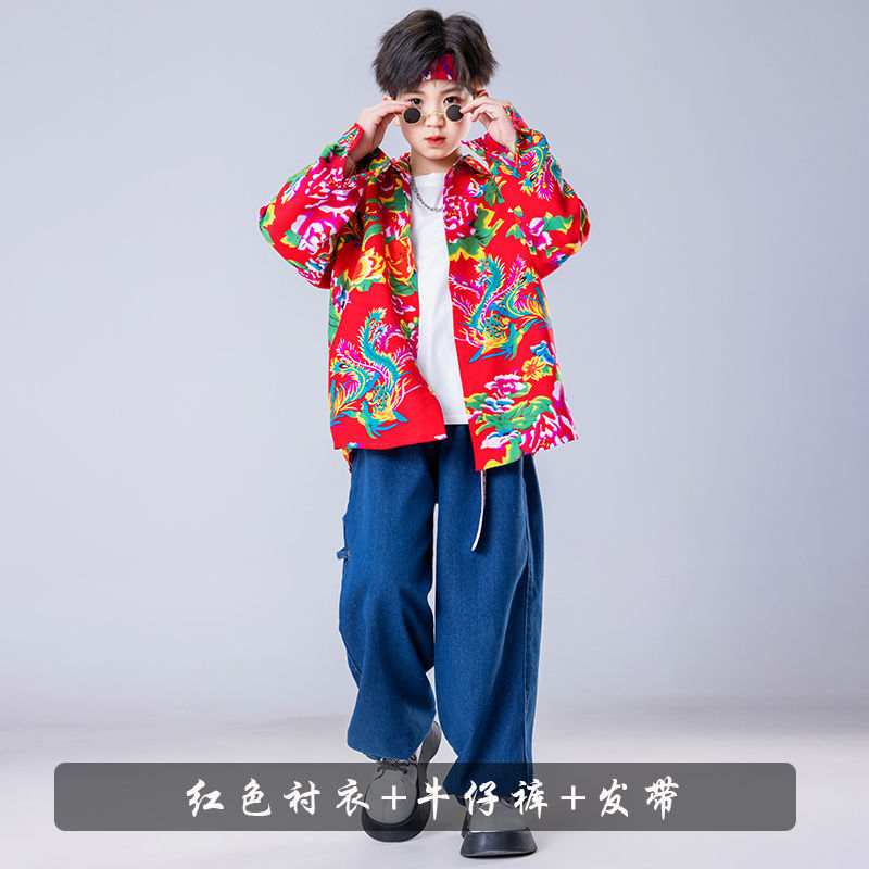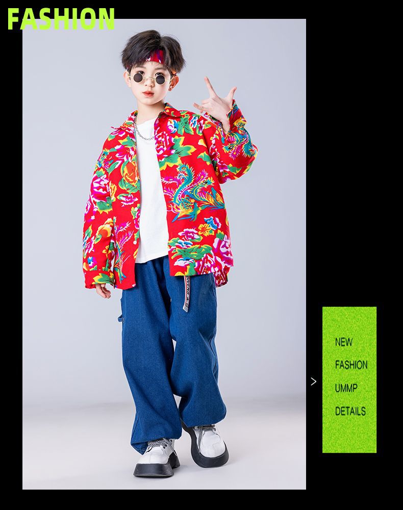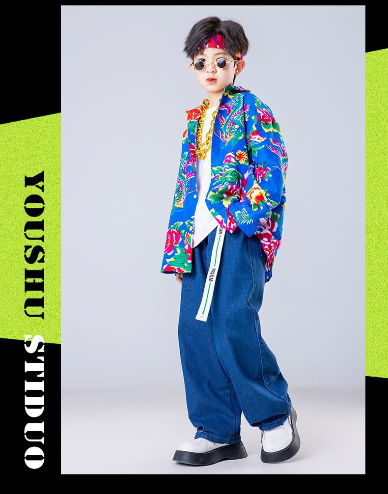 힙합 동북 꽃 천 원래 셔츠 어린이 힙합 패션 세트 어린이 어린이 민족 스타일 공연 세트 봄스토어 가기