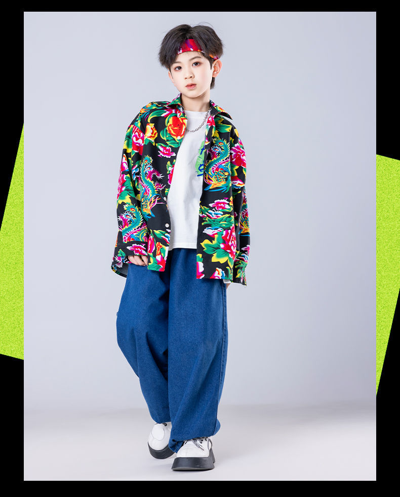 힙합 동북 꽃 천 원래 셔츠 어린이 힙합 패션 세트 어린이 어린이 민족 스타일 공연 세트 봄