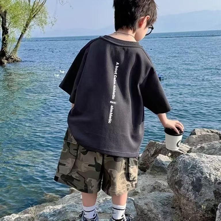 100 면 어린이 반소매 여름 새 도착 소년 한국 루즈 티셔츠 빅 키즈 보이즈 디지털 탑 야외스토어 가기