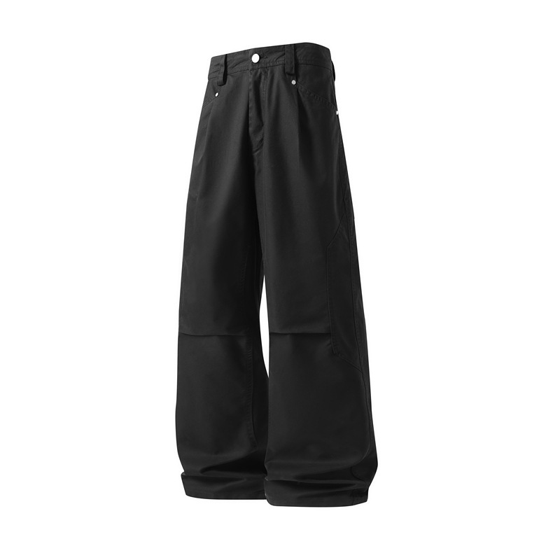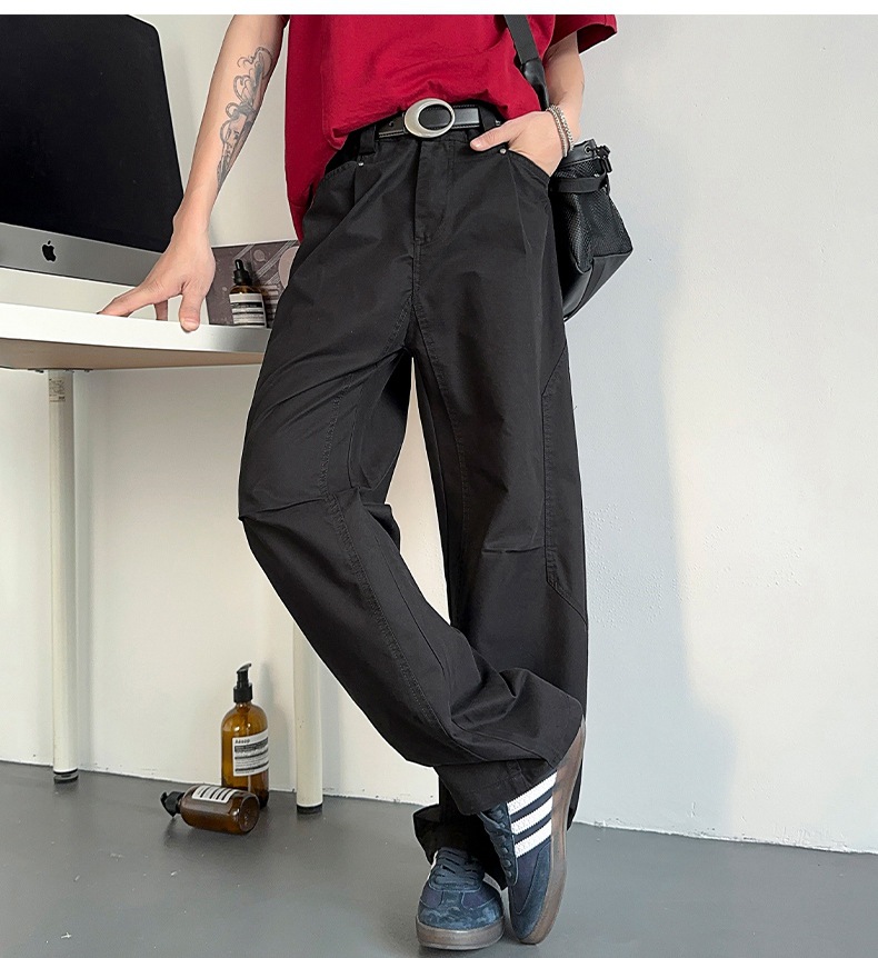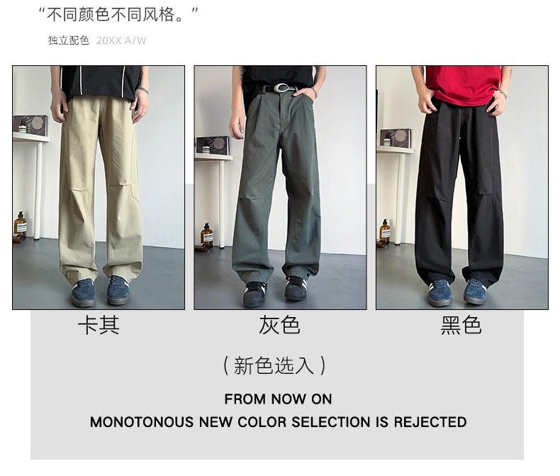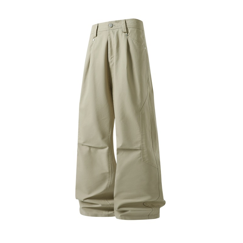무료 배송 패션 브랜드 사이드 스티칭 코튼 브로케이드 팬츠 남성 봄 2025 새로운 싱글 Pleat 디자인 느슨한 스트레이트 캐주얼스토어 가기