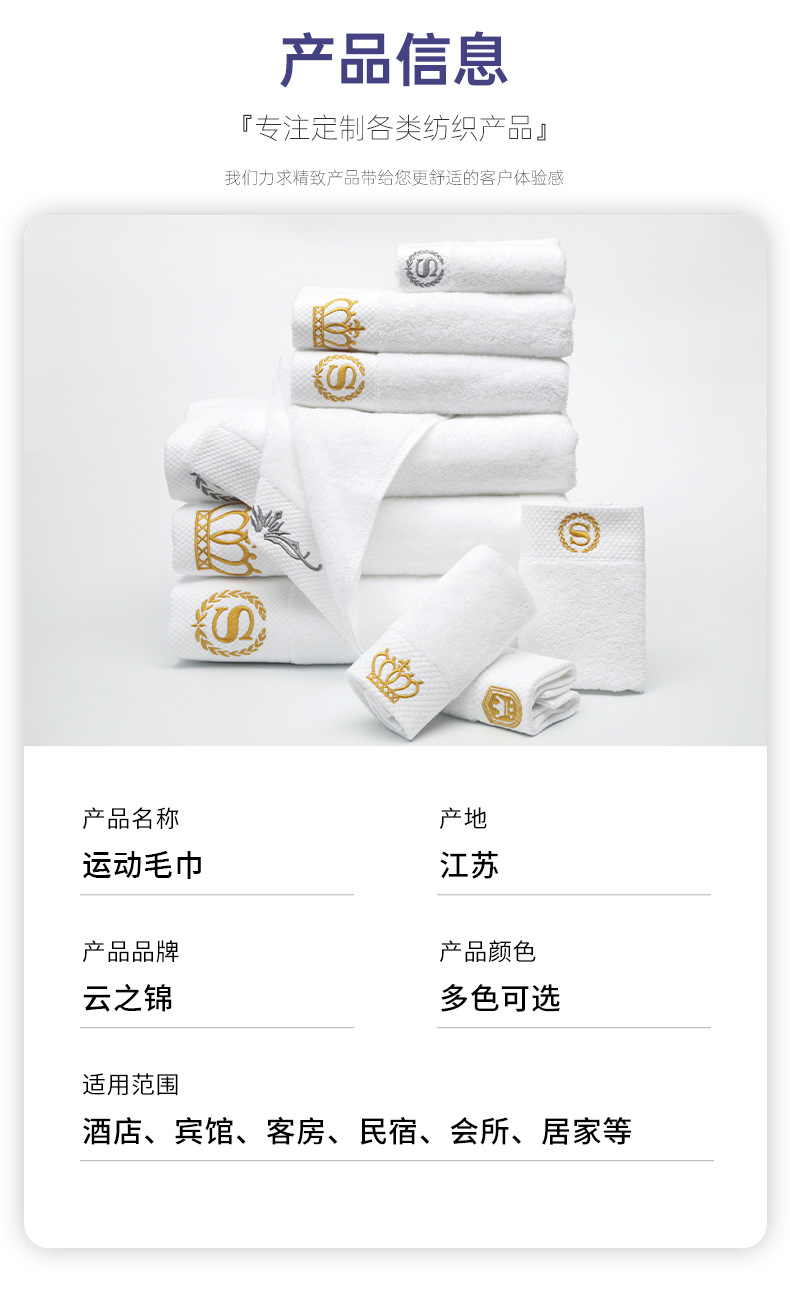퓨어 코튼 화이트 뷰티 살롱 호텔 홈스테이 페이스 타월 로고 자수 호텔 타월 퓨어 코튼 세트 호텔 타월 목욕 타월