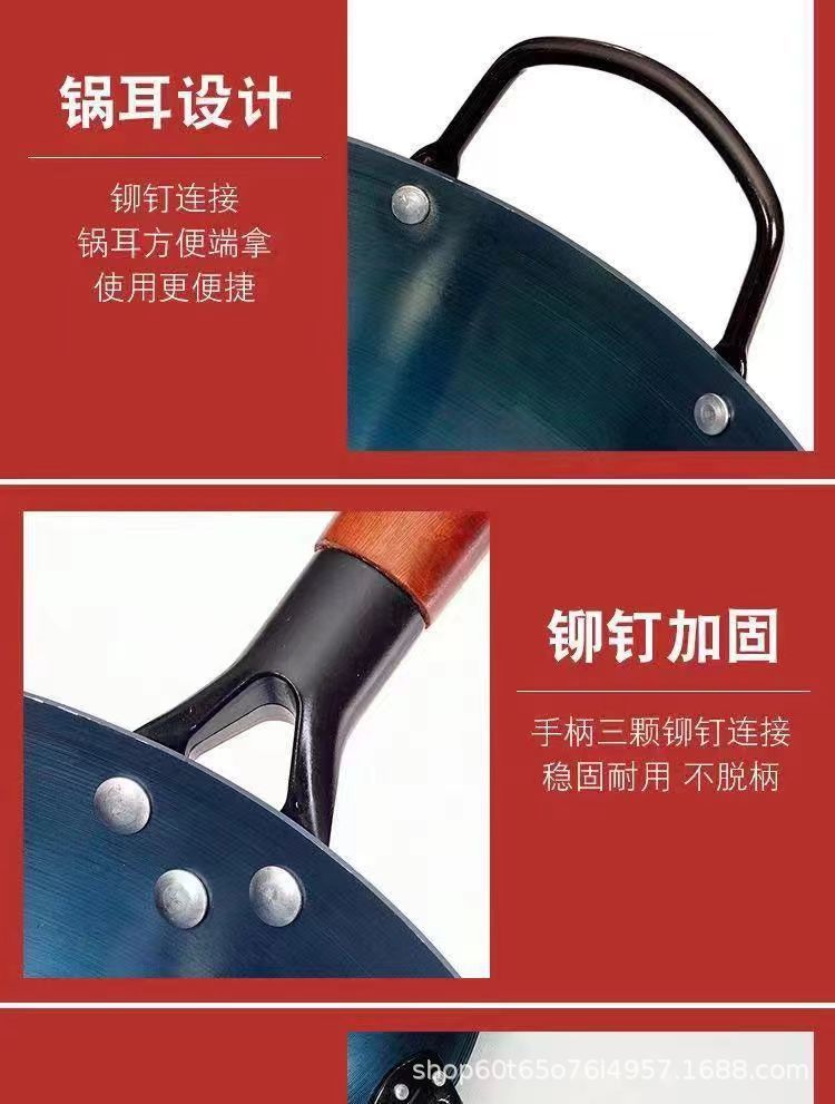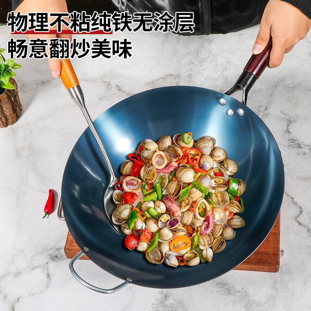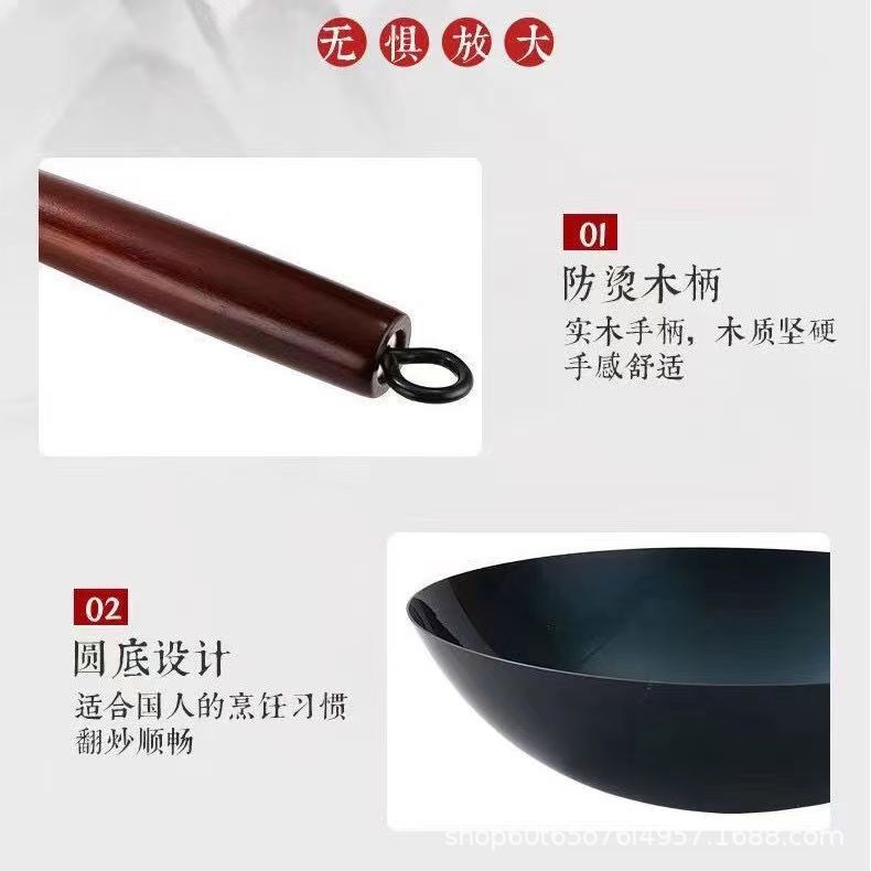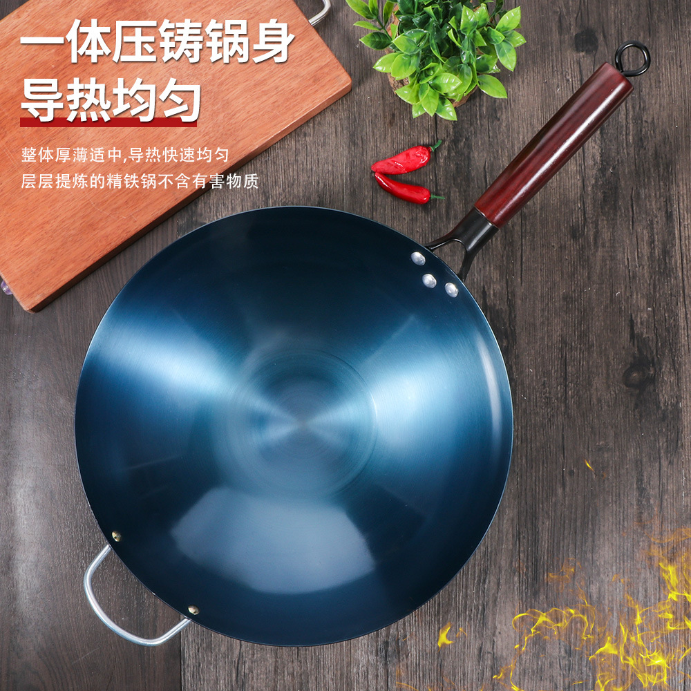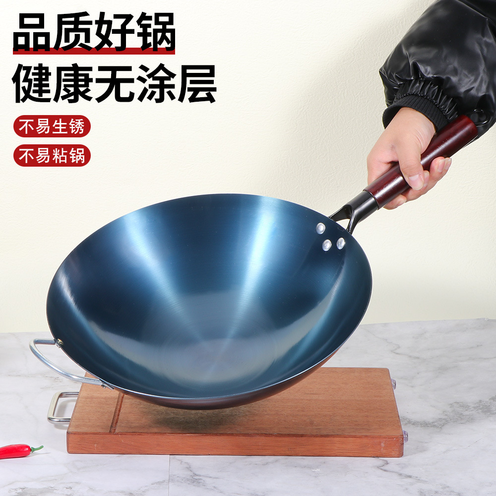 가스 스토브 용 구식 코팅되지 않은 스틱 팬은 국내 상업 요리사를 위해 끓였습니다.스토어 가기