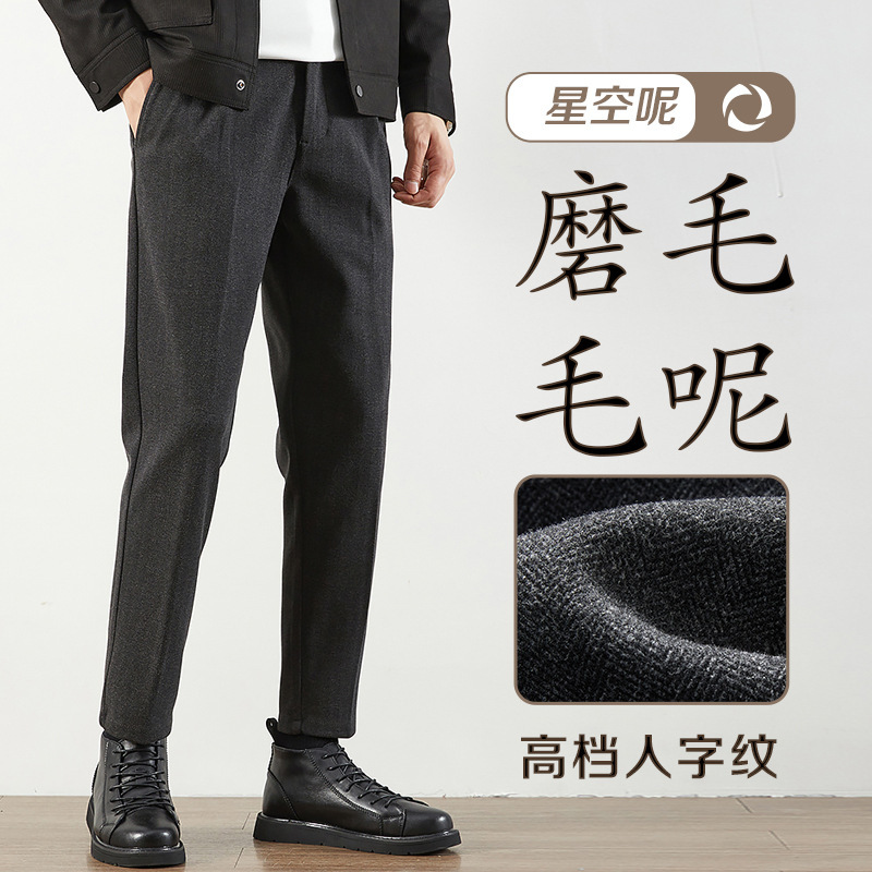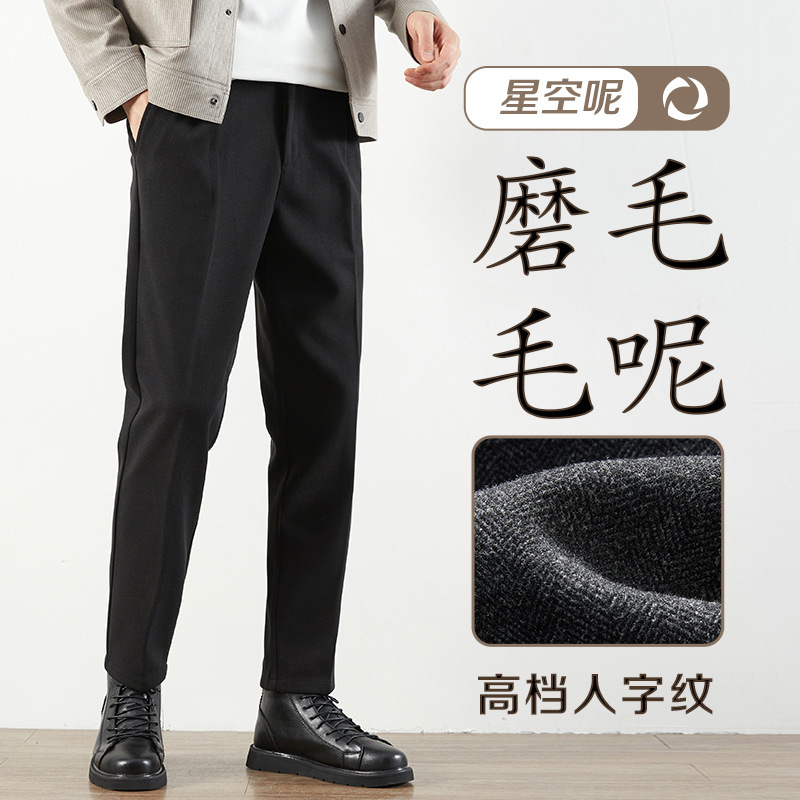 무료 배송 모직 바지 남자의 가을과 겨울 새로운 한국 스타일 작은 서양 바지 남성용 슬림 핏 직선적 캐주얼 웨스턴스토어 가기