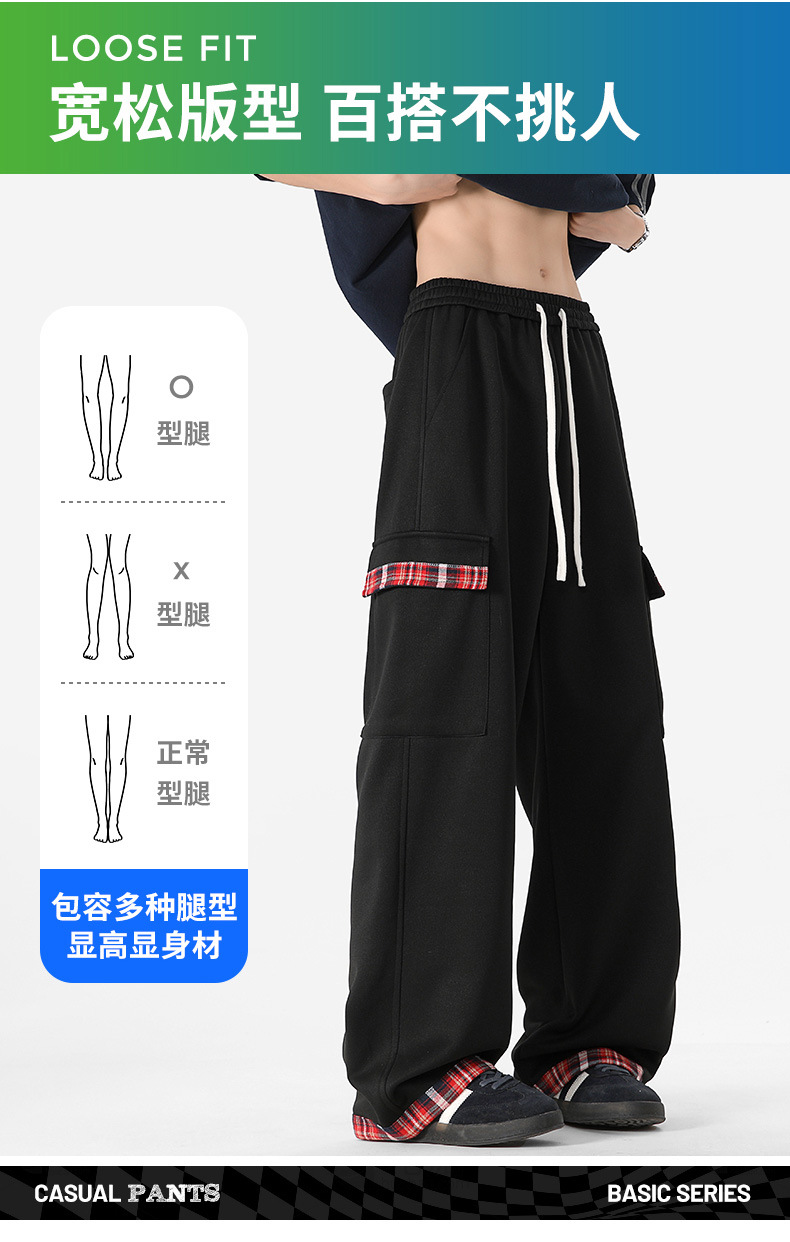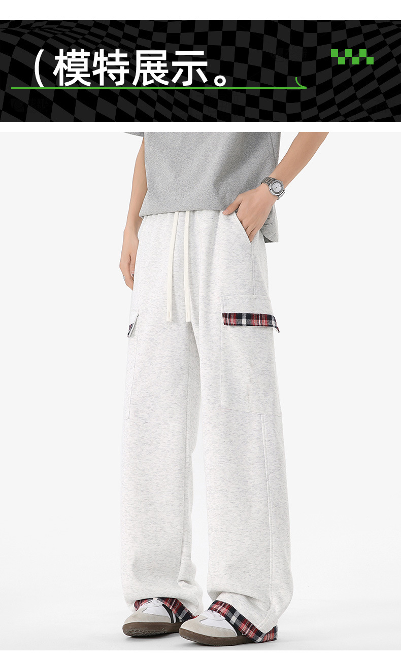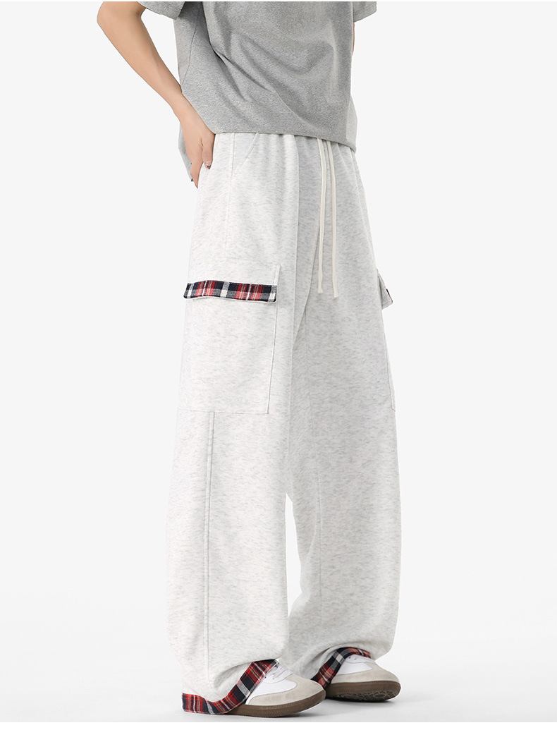 무료 배송 미국 스타일 복고풍 격자 무늬 넓은 다리 스포츠 바지 남자 2025 년 봄과 가을 새 커플의 세련된 브랜드 스트레이트 브레이크