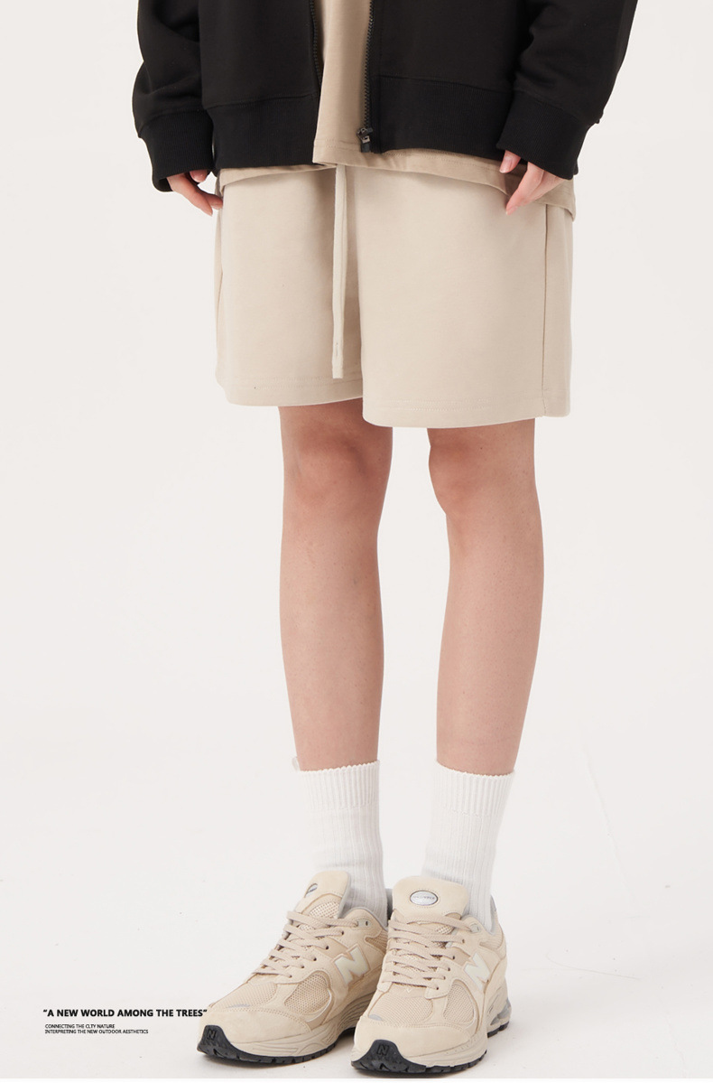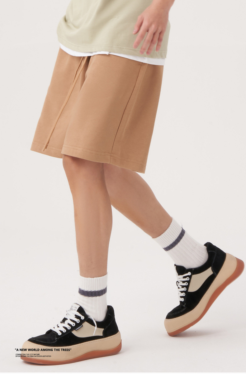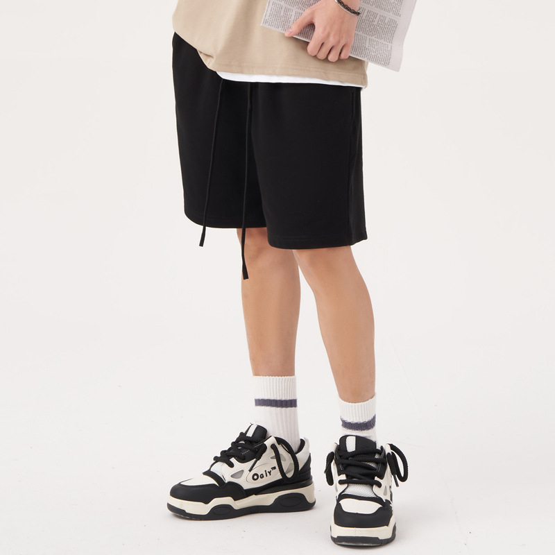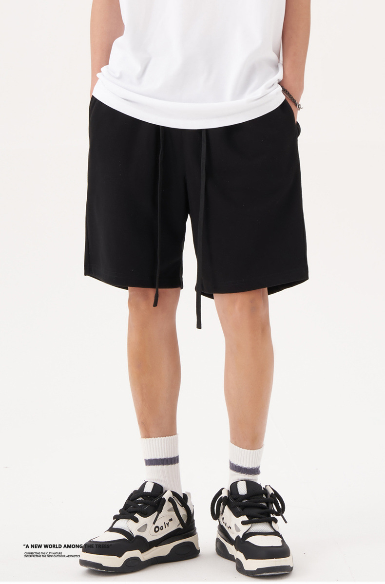 무료 배송 남자 2025 여름 새로운 진주 면화 바지 느슨한 허리 캐주얼 스포츠 반바지 솔리드 컬러 중형 바지스토어 가기