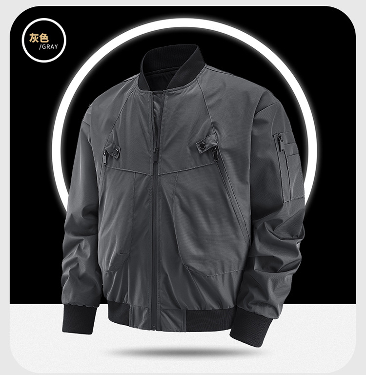 무료 배송 야구 칼라 재킷 남자 멀티 포켓 봄과 가을 재킷 남자 플록 플러스 사이즈 캐주얼 플라잉 옷 봄스토어 가기