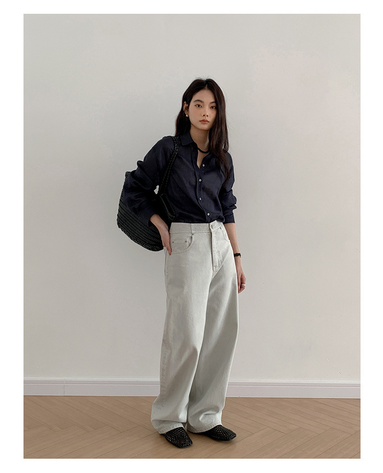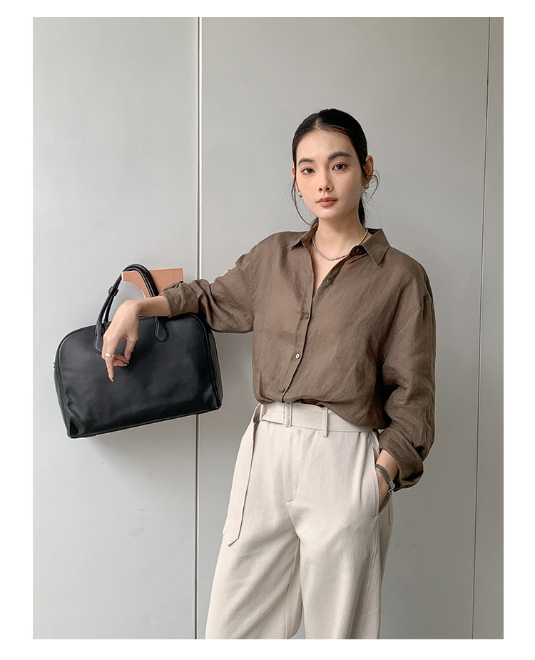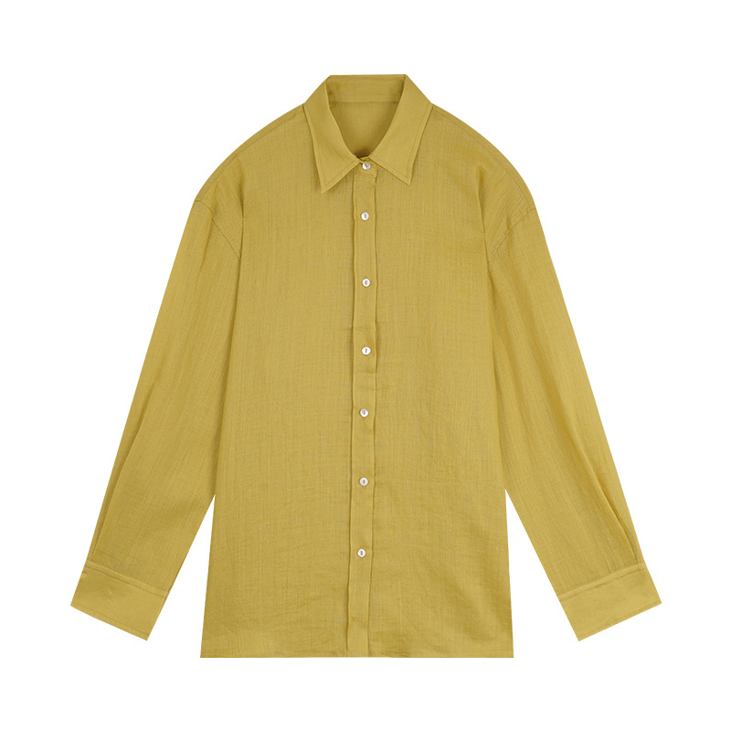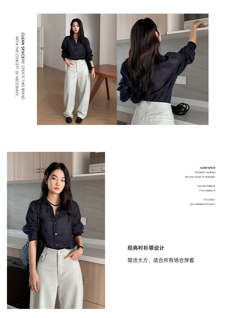 클린 스페이스 클래식 루즈핏 린넨 셔츠 여성용 2025 신상품 한국 패션 셔츠 53823