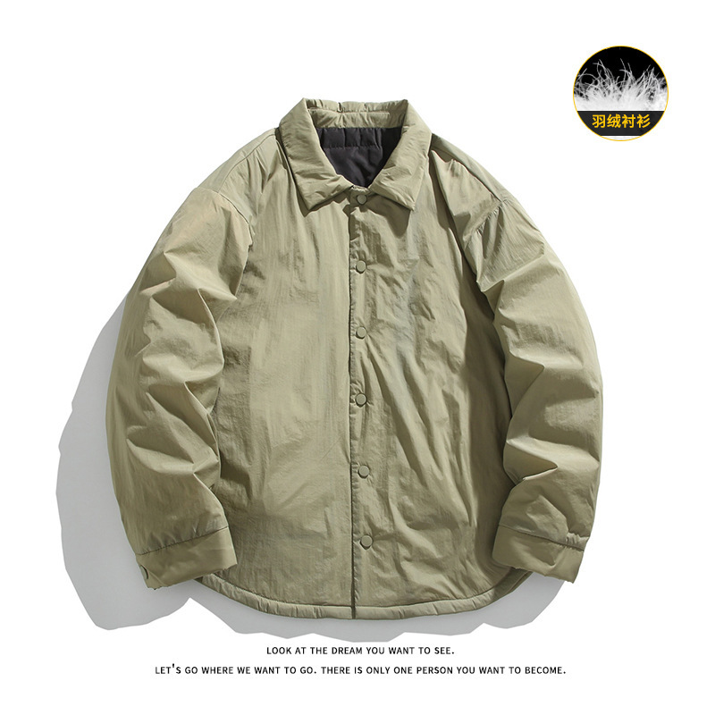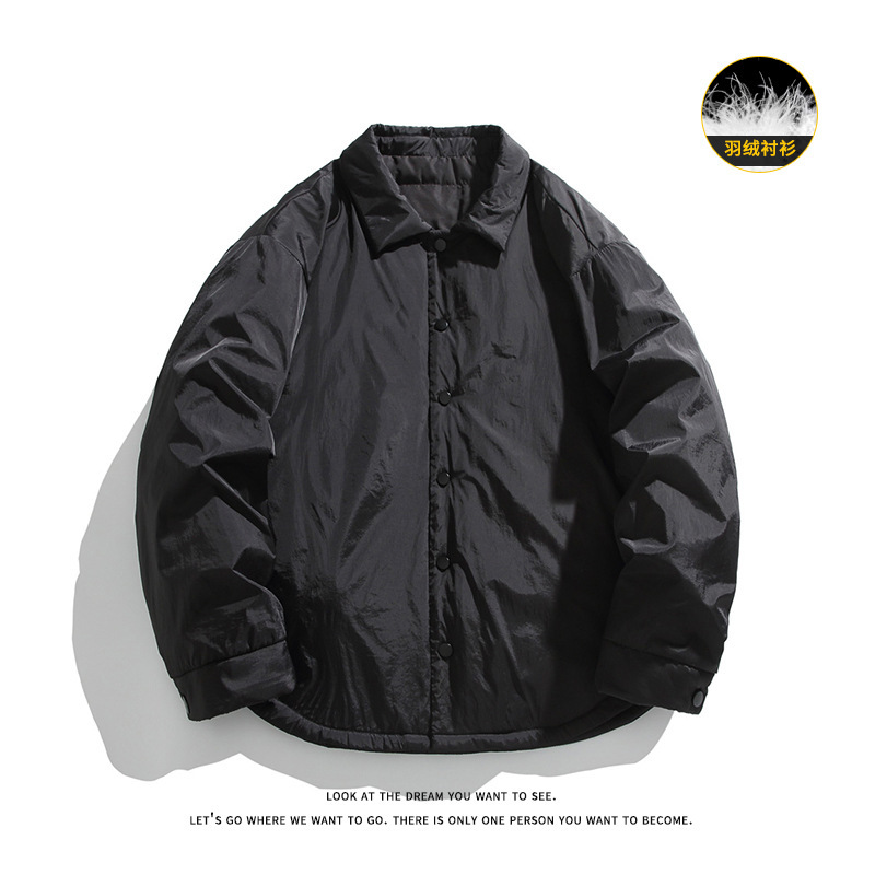 무료 배송 일본 스타일 유행 셔츠 엘 얇은 다운 재킷 남자의 2024 겨울 새로운 패션 브랜드 유행 느슨한 짧은 스타일