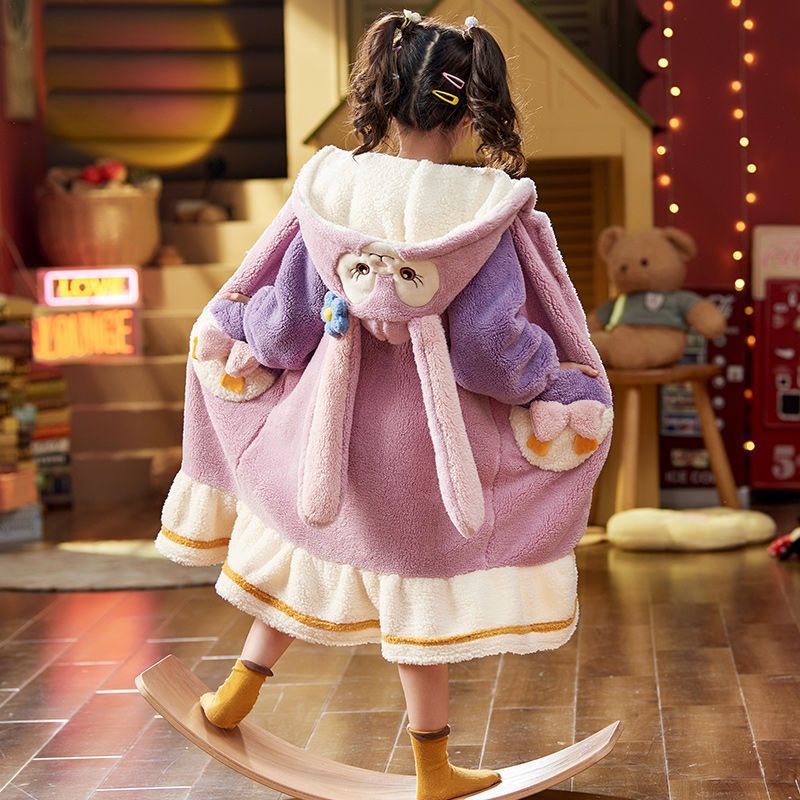 어린이 잠옷 소녀 겨울 두꺼운 기모 아기 산호 양털 목욕 가운 대형 어린이 플란넬 잠옷 홈 옷스토어 가기