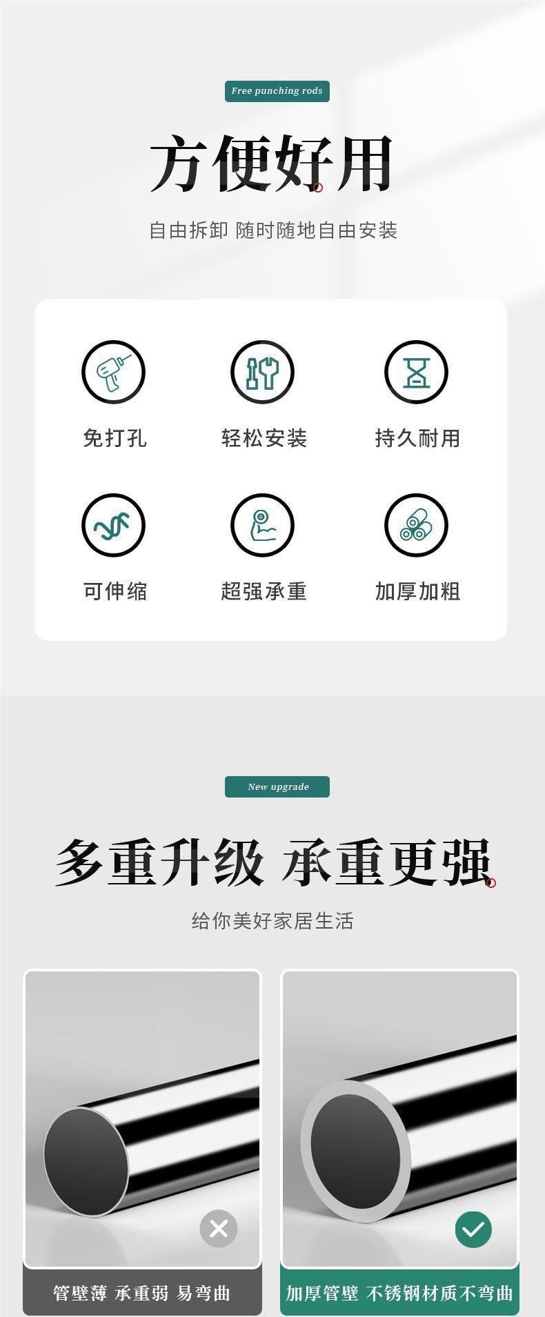 옷 건조 막대 펀치 무료 텔레스코픽 수축 가능한 커튼 막대 옷 매달려 발코니 강철 옷걸이 욕실 샤워 커튼 막대 수건 막대
