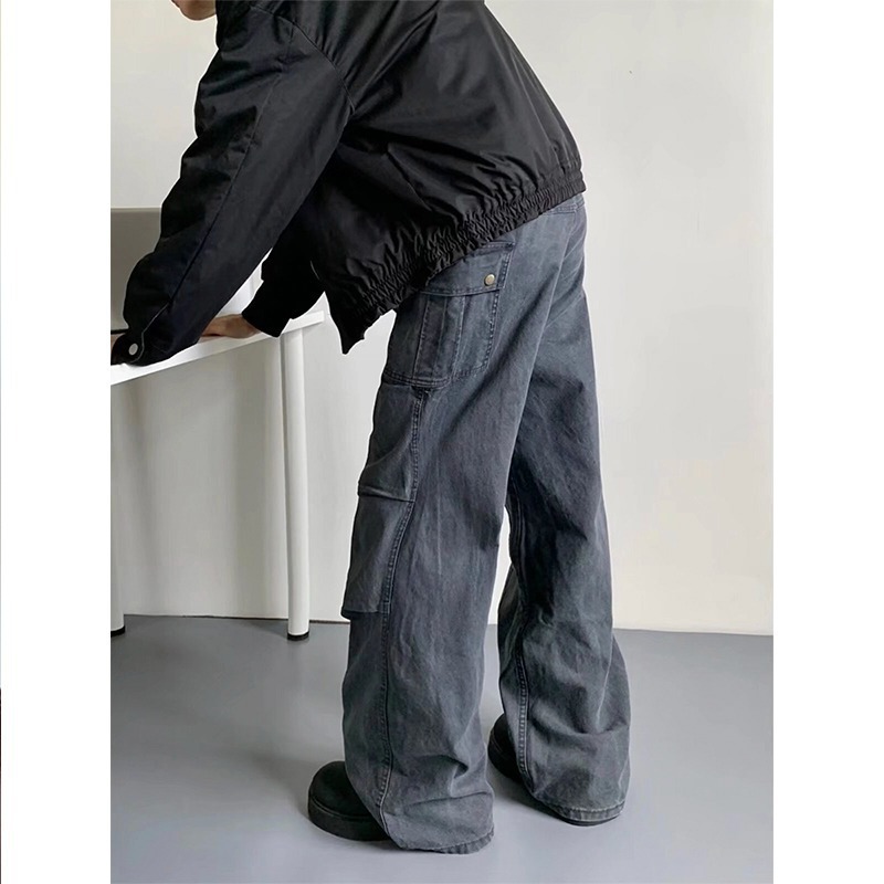 2025 틈새 트렌디 브랜드 복고풍 캐주얼 작업복 남성 및 여성 마이크로 혼 멀티 포켓 클린 핏 바지