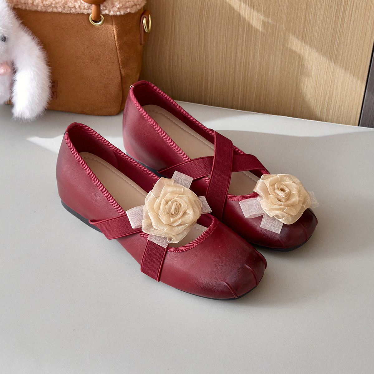 양가죽 버전 ~ 5CM 프랑스 복고풍 동백 꽃 메리 제인 신발 여성 2025 새로운 조커 크로스 탄성 밴드스토어 가기
