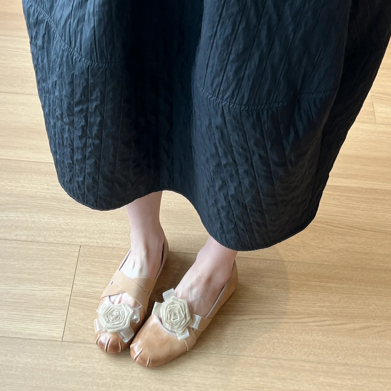 양가죽 버전 ~ 5CM 프랑스 복고풍 동백 꽃 메리 제인 신발 여성 2025 새로운 조커 크로스 탄성 밴드